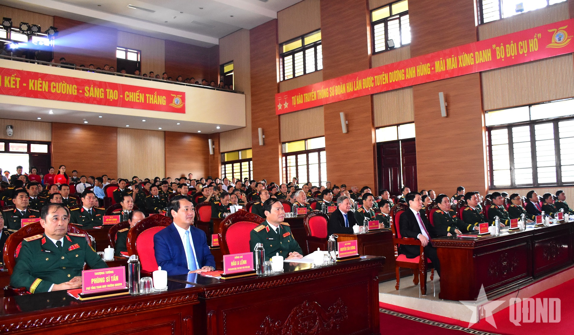 Lãnh đạo Quân khu 2, Sư đoàn 316 chào mừng Đại tướng Nguyễn Tân Cương dự lễ kỷ niệm.
