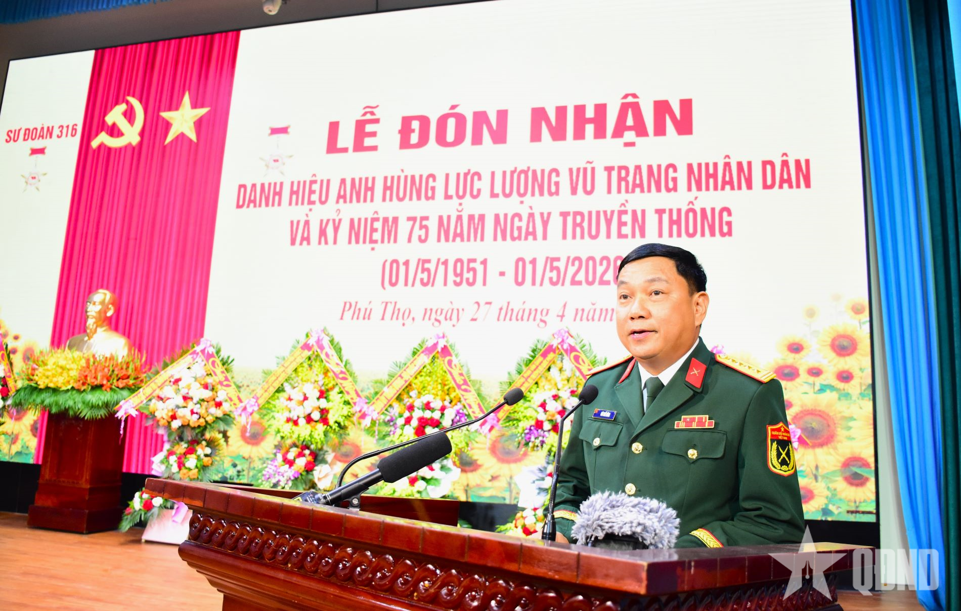 Phát biểu tại lễ kỷ niệm, thay mặt Quân ủy Trung ương, lãnh đạo Bộ Quốc phòng, Đại tướng Nguyễn Tân Cương ghi nhận, nhiệt liệt biểu dương và chúc mừng những thành tích xuất sắc, đóng góp quan trọng của các thế hệ cán bộ, chiến sĩ Sư đoàn 316 trong những năm qua.