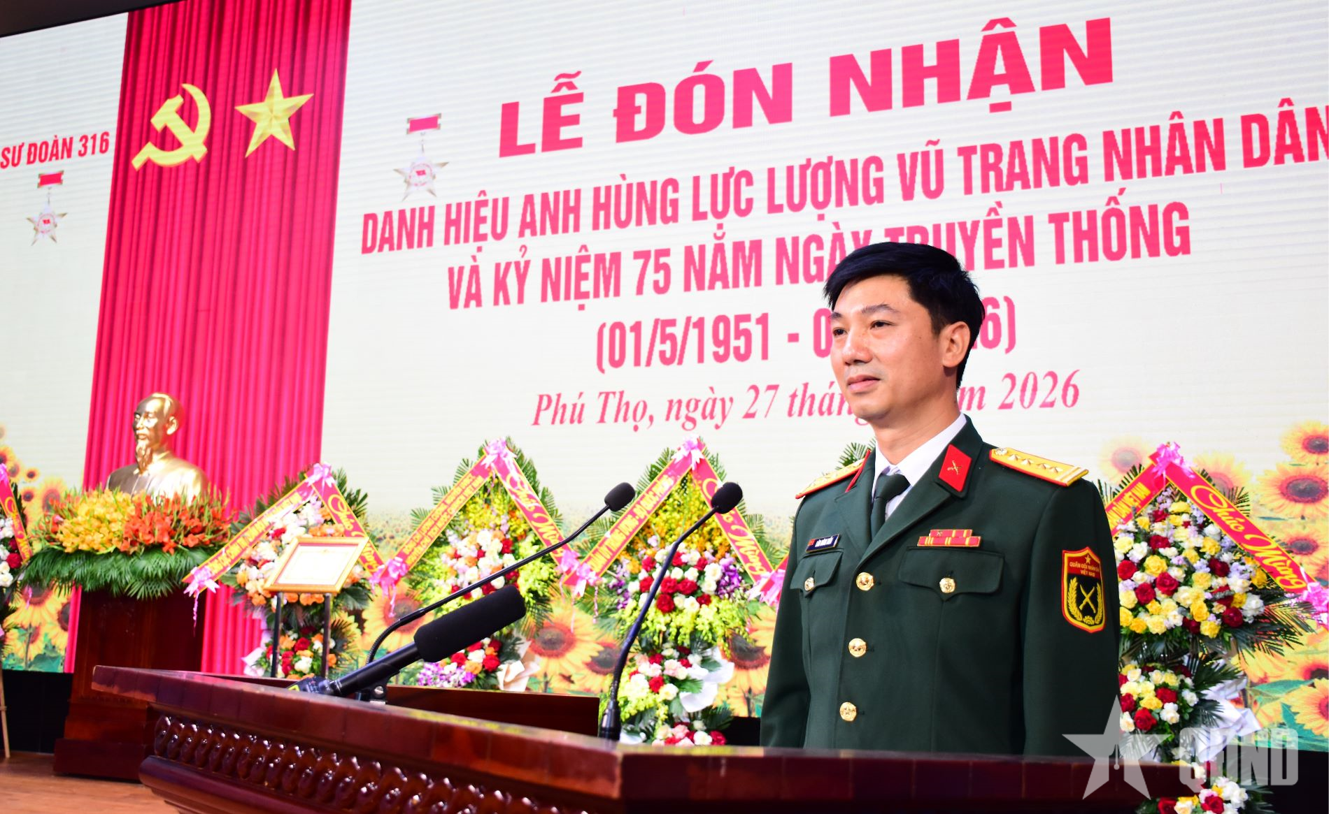 Tại buổi lễ, thừa ủy quyền của Chủ tịch nước, Đại tướng Nguyễn Tân Cương trao danh hiệu Anh hùng Lực lượng vũ trang nhân dân tặng Sư đoàn 316.