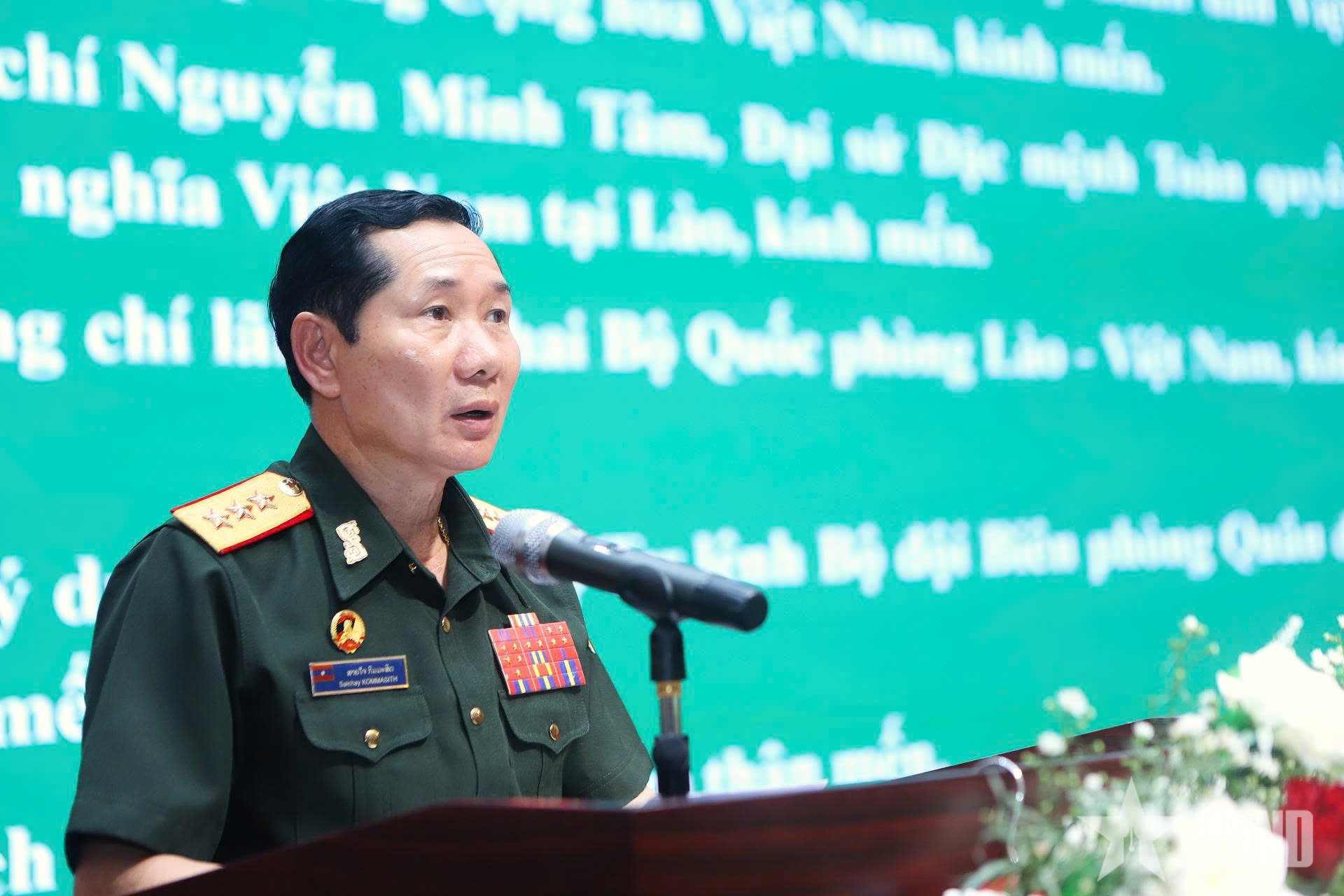 Thay mặt lãnh đạo Bộ Quốc phòng Lào, Thượng tướng Saichay Kommasith, chân thành cảm ơn Đảng, Nhà nước, Bộ Quốc phòng Việt Nam luôn quan tâm, giúp đỡ đầu tư xây dựng cơ sở hạ tầng, góp phần nâng cao chất lượng thực hiện nhiệm vụ cho các lực lượng của Quân đội nhân dân Lào nói chung và Bộ đội Biên phòng Lào nói riêng.