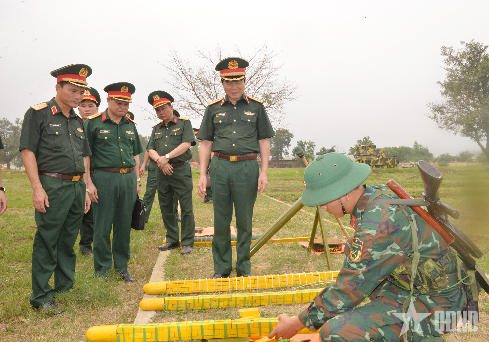 Đại tướng Nguyễn Tân Cương kiểm tra các nội dung huấn luyện tại thao trường.