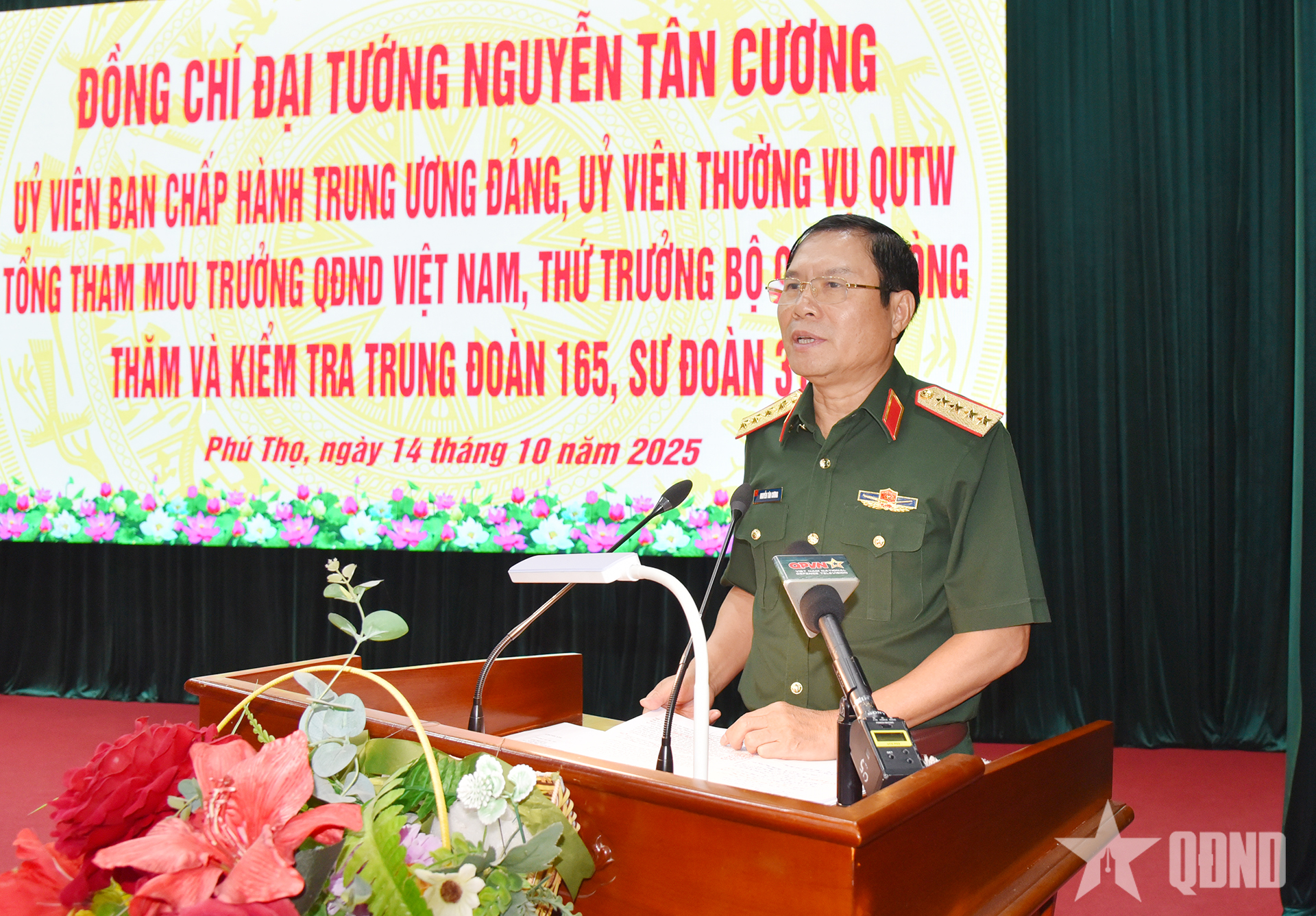 Sau khi trực tiếp kiểm tra công tác huấn luyện, sẵn sàng chiến đấu, xây dựng đơn vị và nghe chỉ huy đơn vị báo cáo, Đại tướng Nguyễn Tân Cương biểu dương những kết quả nổi bật mà Trung đoàn 165 đã đạt được trong thời gian qua; nhất là Đảng ủy, chỉ huy Trung đoàn đã quán triệt sâu sắc các nghị quyết, chỉ thị, mệnh lệnh của cấp trên, triển khai thực hiện toàn diện trên các mặt công tác, hoàn thành tốt nhiệm vụ được giao.