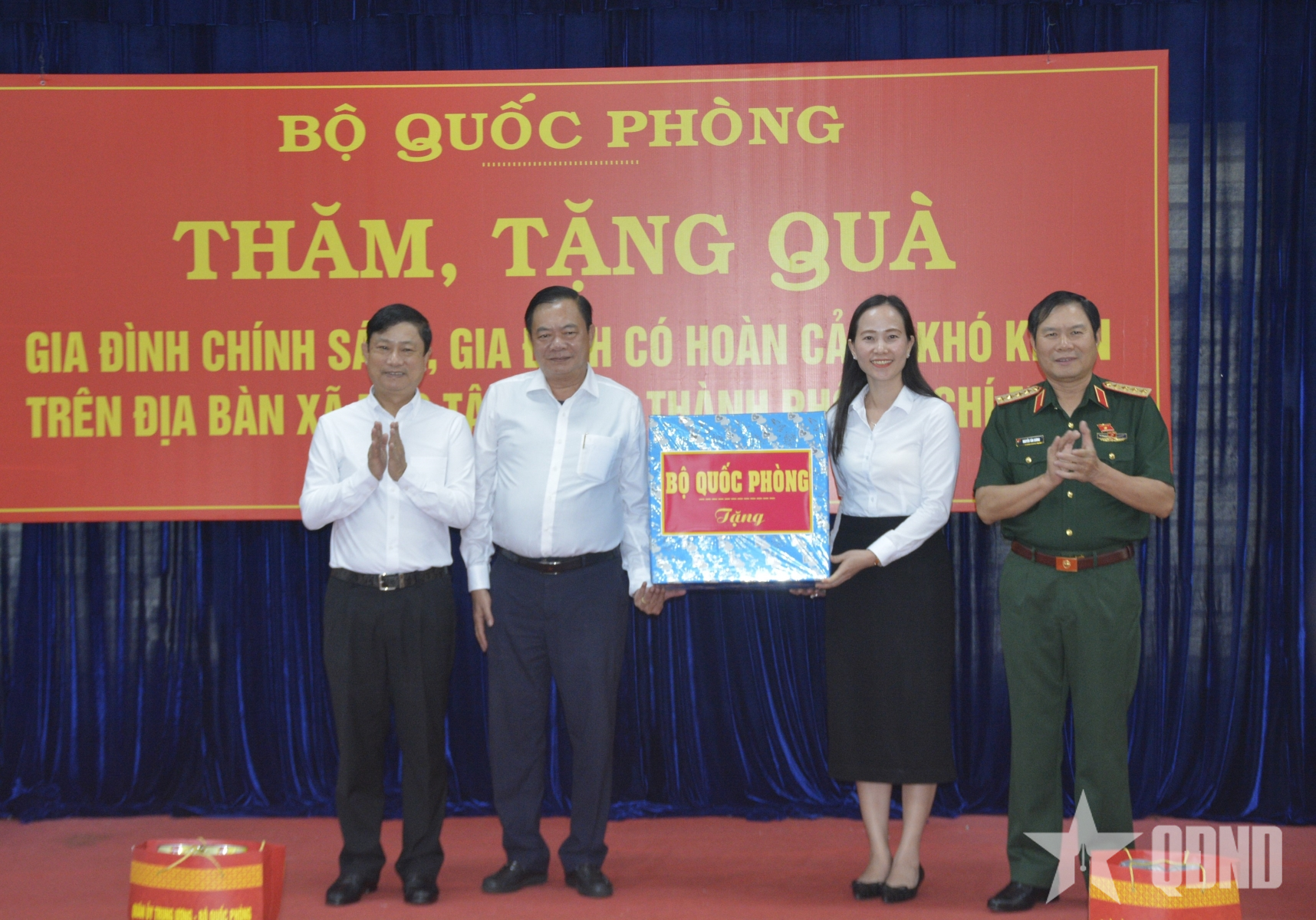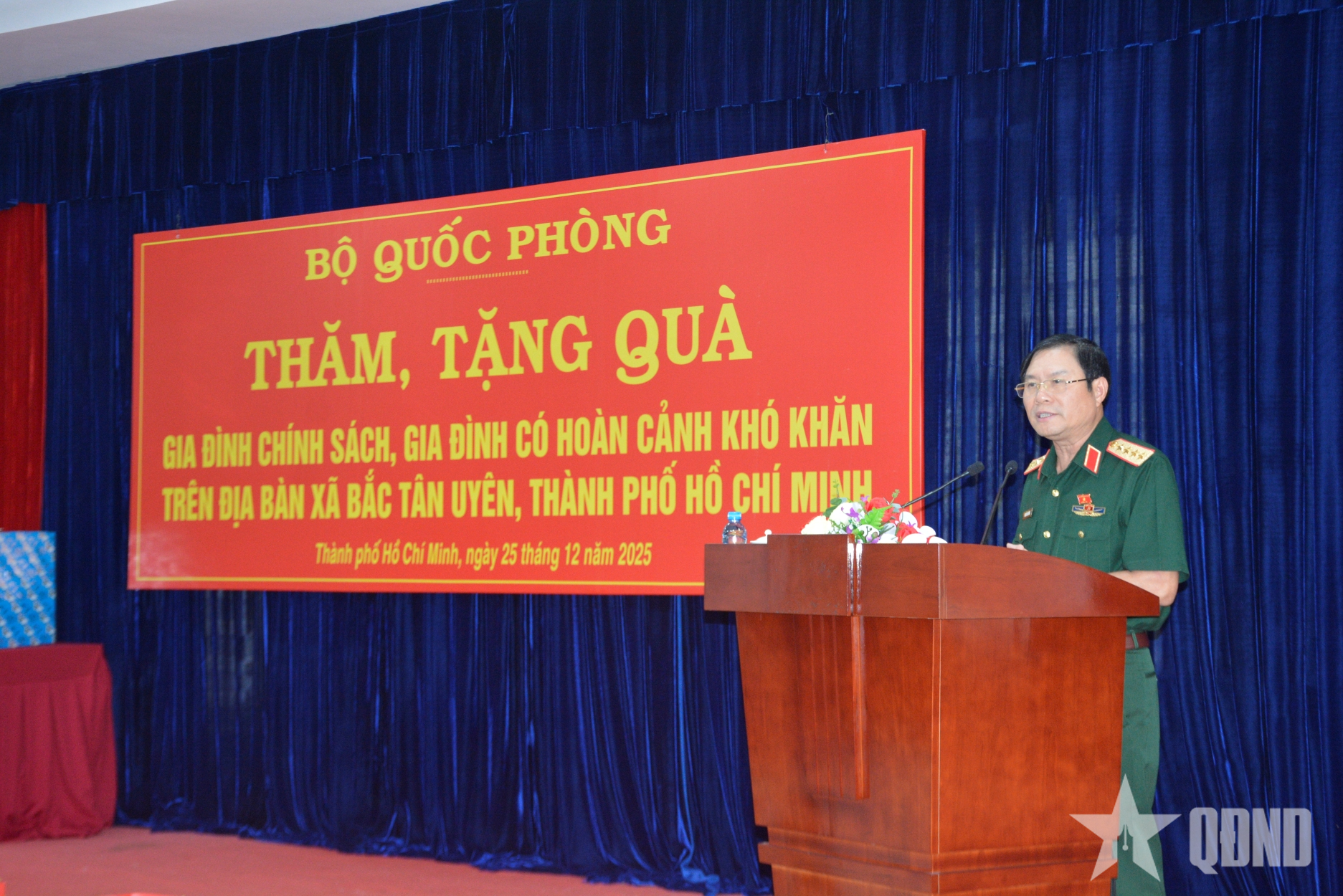 Phát biểu tại buổi thăm, tặng quà, Đại tướng Nguyễn Tân Cương nhấn mạnh, trong năm 2025, toàn quân đã thực hiện tốt công tác chính sách, dân vận, “Đền ơn đáp nghĩa”, chăm lo an sinh xã hội. Cụ thể, đã thăm, tặng quà cho các đối tượng với số tiền gần 2.000 tỷ đồng; xây tặng 992 nhà tình nghĩa; phụng dưỡng 595 Bà mẹ Việt Nam anh hùng; tìm kiếm, quy tập 1.606 hài cốt liệt sĩ...