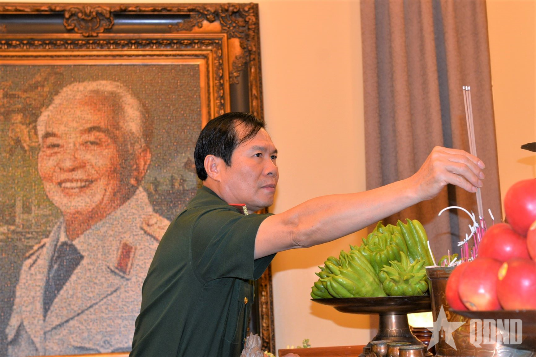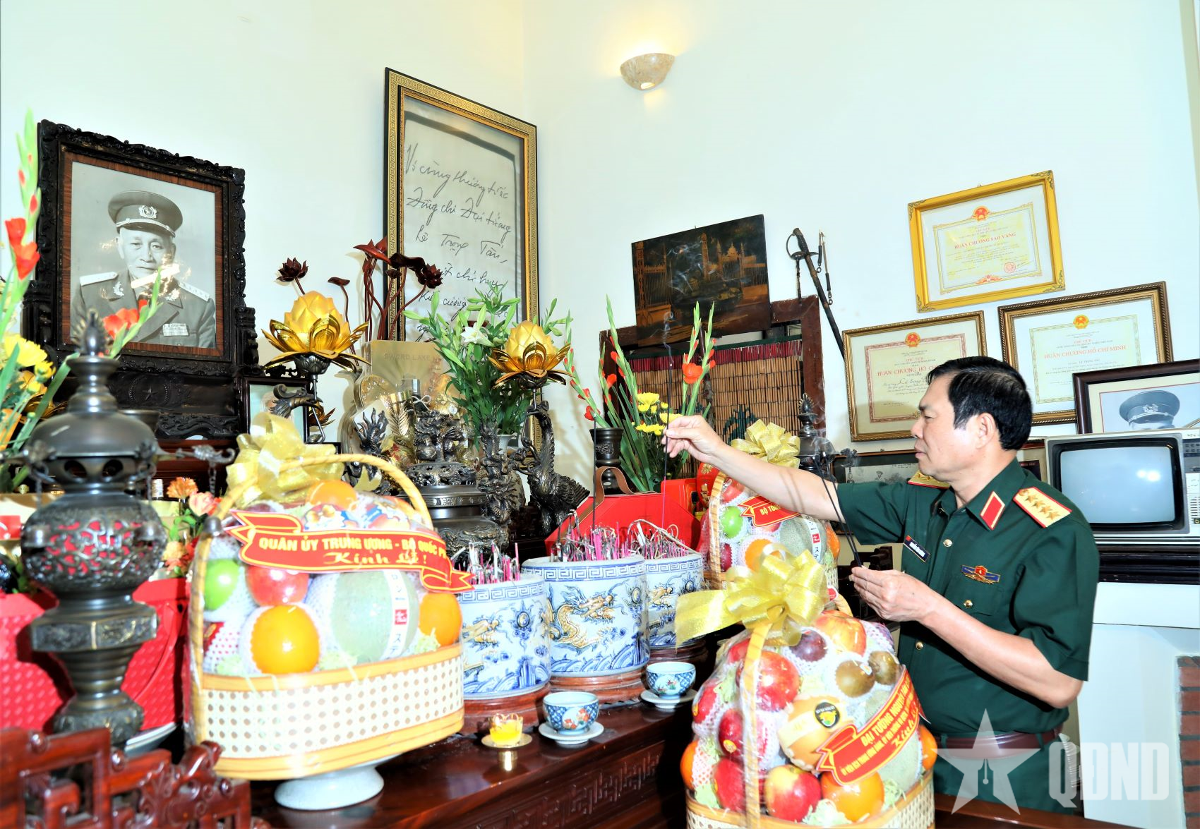 Đại tướng Nguyễn Tân Cương thắp hương tưởng nhớ Đại tướng Võ Nguyên Giáp.