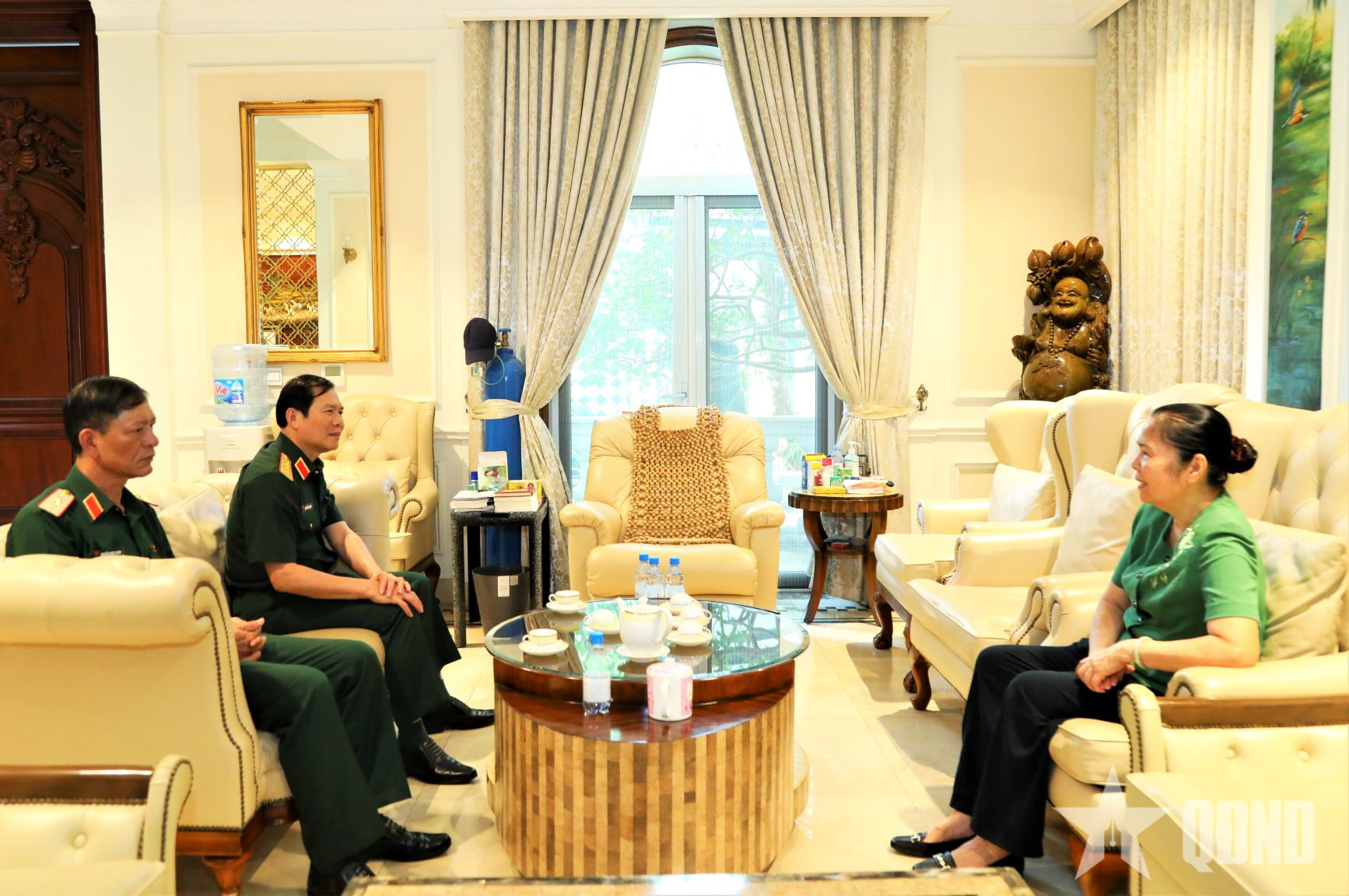 Đến thăm Trung tướng, Anh hùng LLVT nhân dân Đặng Quân Thụy, nguyên Phó chủ tịch Quốc hội, Đại tướng Nguyễn Tân Cương thăm hỏi sức khỏe, đời sống, thông tin một số kết quả nổi bật của toàn quân trong thời gian qua, đồng thời mong muốn đồng chí tiếp tục quan tâm, theo dõi và đóng góp các ý kiến quý báu, tâm huyết để xây dựng Quân đội nhân dân Việt Nam ngày càng vững mạnh, hoàn thành xuất sắc nhiệm vụ được Đảng, Nhà nước và nhân dân tin tưởng giao phó.