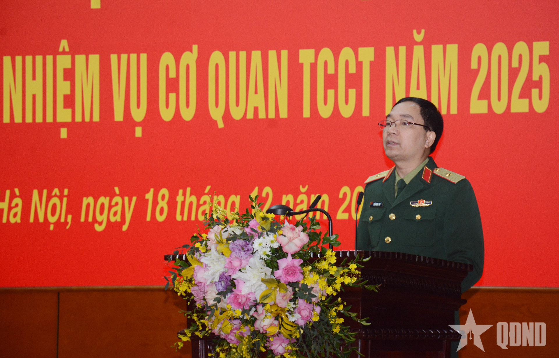 Báo cáo tại hội nghị do Thượng tướng Lê Quang Minh trình bày khẳng định, năm 2025, Cơ quan Tổng cục Chính trị đã triển khai toàn diện, có trọng tâm, trọng điểm, hoàn thành tốt các nhiệm vụ thường xuyên, đặc biệt là hoàn thành xuất sắc các nhiệm vụ đột xuất được giao. Nổi bật là, đã tham mưu, chỉ đạo, hướng dẫn triển khai đồng bộ các giải pháp nâng cao chất lượng, hiệu quả công tác giáo dục chính trị, lãnh đạo tư tưởng; định hướng truyền thông tiên phong trong bảo vệ nền tảng tư tưởng của Đảng, hoạt động thông tin, tuyên truyền, báo chí, văn hóa, văn học, nghệ thuật, điện ảnh, xuất bản, thư viện, trưng bày, triển lãm đúng định hướng chính trị…