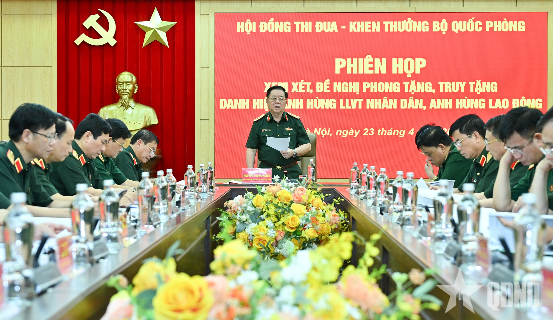 Phát biểu kết luận phiên họp, Đại tướng Nguyễn Trọng Nghĩa ghi nhận và đánh giá cao công tác chuẩn bị của Cơ quan Thường trực Hội đồng TĐ-KT Bộ Quốc phòng và các thành viên Hội đồng. Đồng chí cho biết những tập thể, cá nhân được xét đề nghị truy tặng, phong tặng các danh hiệu Anh hùng đều rất tiêu biểu, mẫu mực, có nhiều thành tích, đóng góp đặc biệt trong các cuộc kháng chiến, đấu tranh giải phóng dân tộc, thống nhất đất nước, xây dựng và bảo vệ Tổ quốc, xây dựng Quân đội trong các lĩnh vực giai đoạn hiện nay.