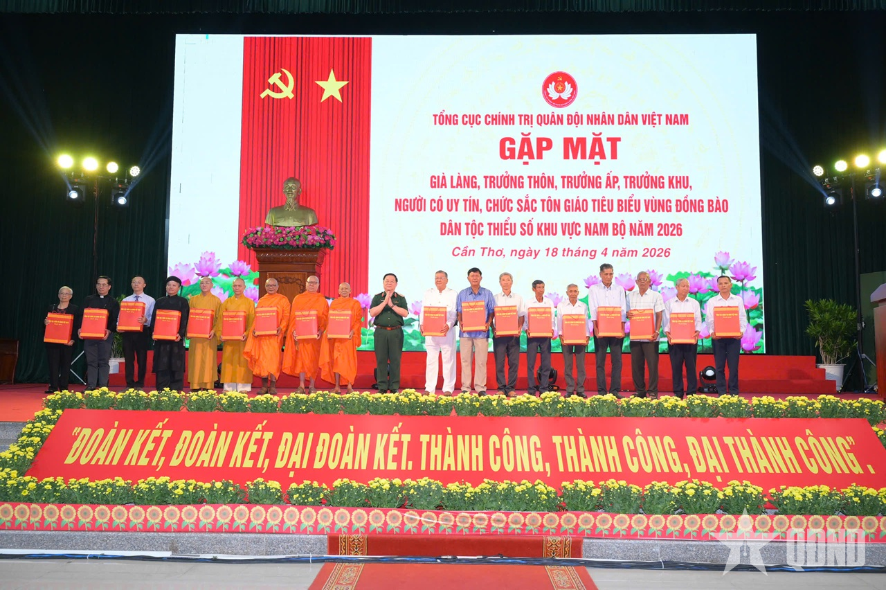 Đồng chí Chủ nhiệm Tổng cục Chính trị nhấn mạnh: Trong 5 năm qua, với sự quan tâm của Trung ương, sự nỗ lực của cấp ủy, chính quyền, LLVT và nhân dân, Nam Bộ đã đạt được nhiều kết quả quan trọng trên các lĩnh vực kinh tế, văn hóa - xã hội, quốc phòng, an ninh. Bằng uy tín và trách nhiệm của mình, các vị già làng, trưởng thôn, trưởng ấp, trưởng khu, người có uy tín, chức sắc tôn giáo đã tích cực vận động dòng họ, con cháu, tín đồ chấp hành pháp luật, tham gia bảo vệ an ninh trật tự, giữ gìn biên giới, đấu tranh làm thất bại âm mưu, thủ đoạn của các thế lực thù địch lợi dụng vấn đề dân tộc, tôn giáo, dân chủ, nhân quyền để chia rẽ khối đại đoàn kết toàn dân tộc. Những đóng góp đó là hết sức quý báu, rất đáng trân trọng và biểu dương.