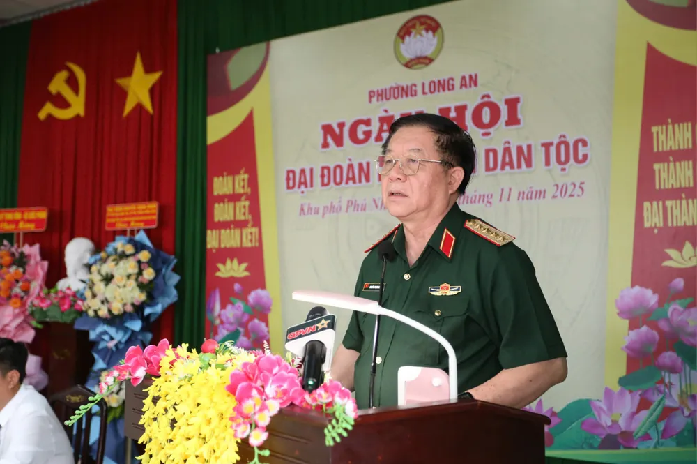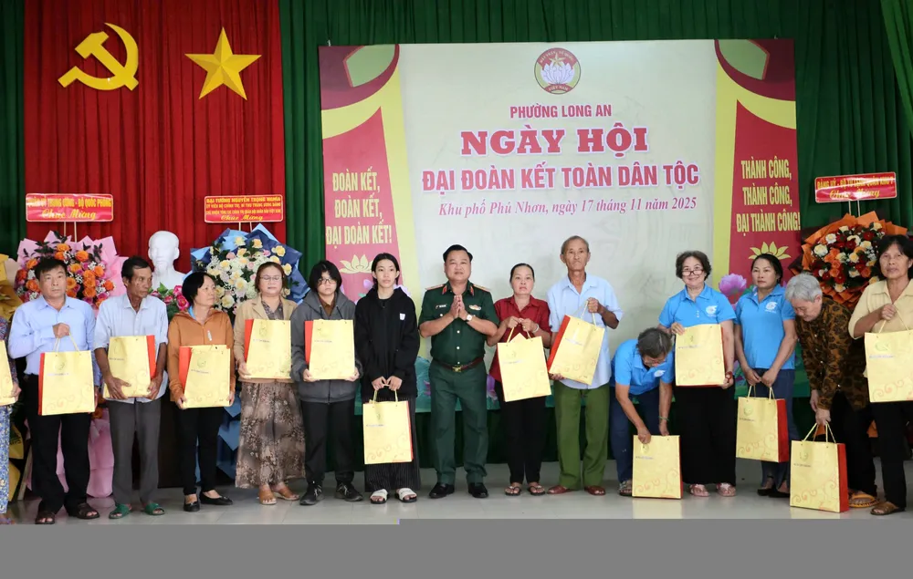 Sáng 17-11, khu phố Phú Nhơn (phường Long An, tỉnh Tây Ninh) tổ chức Ngày hội Đại đoàn kết toàn dân tộc với sự tham dự của Đại tướng Nguyễn Trọng Nghĩa, Ủy viên Bộ Chính trị, Chủ nhiệm Tổng cục Chính trị QĐND Việt Nam.