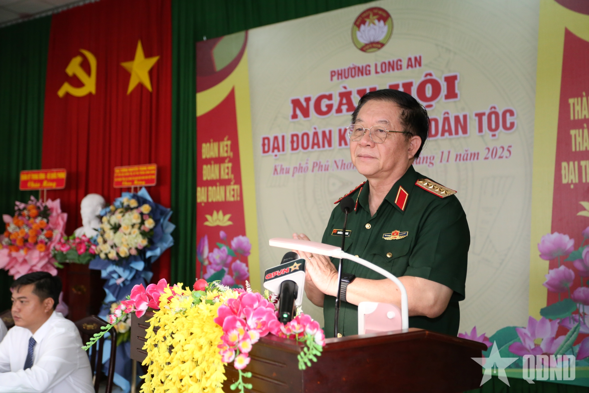Đại tướng Nguyễn Trọng Nghĩa phát biểu tại Ngày hội Đại đoàn kết toàn dân tộc tại khu phố Phú Nhơn.