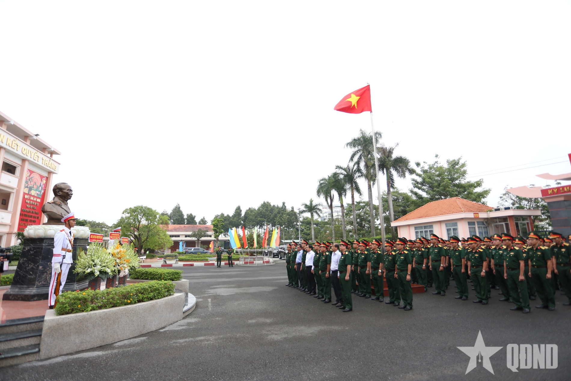 Đại tướng Nguyễn Trọng Nghĩa và đoàn công tác dâng hoa tưởng niệm Đại tướng Võ Nguyên Giáp tại Bộ Chỉ huy Quân sự tỉnh Tây Ninh.