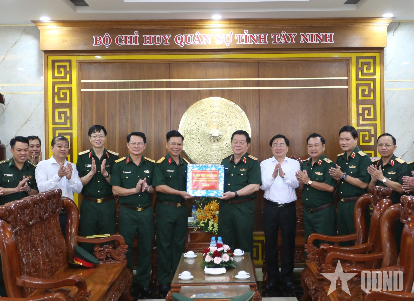 Đại tướng Nguyễn Trọng Nghĩa và đoàn công tác thăm, tặng quà tại Bộ Chỉ huy Quân sự tỉnh Tây Ninh.