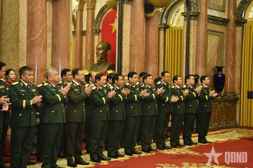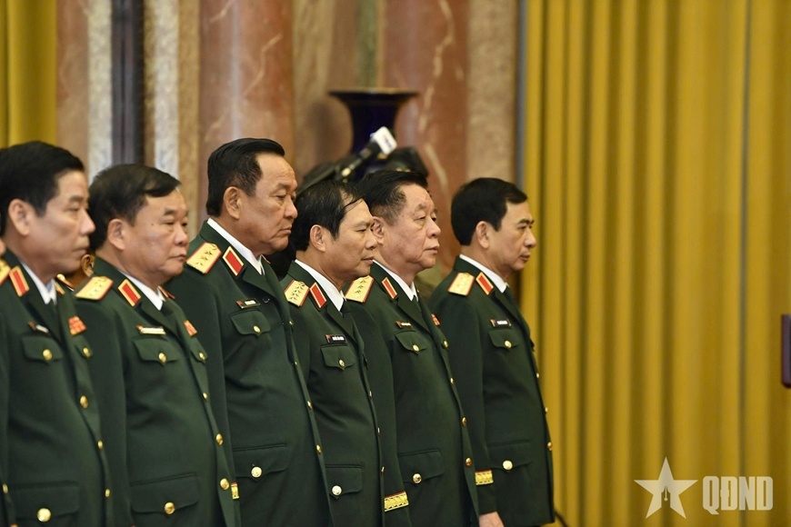 Chủ tịch nước Lương Cường, Ủy viên Bộ Chính trị, Thống lĩnh lực lượng vũ trang nhân dân, Chủ tịch Hội đồng Quốc phòng và An ninh trao Quyết định bổ nhiệm chức vụ Chủ nhiệm Tổng cục Chính trị Quân đội nhân dân Việt Nam và trao Quyết định thăng quân hàm cấp Đại tướng đối với đồng chí Nguyễn Trọng Nghĩa.