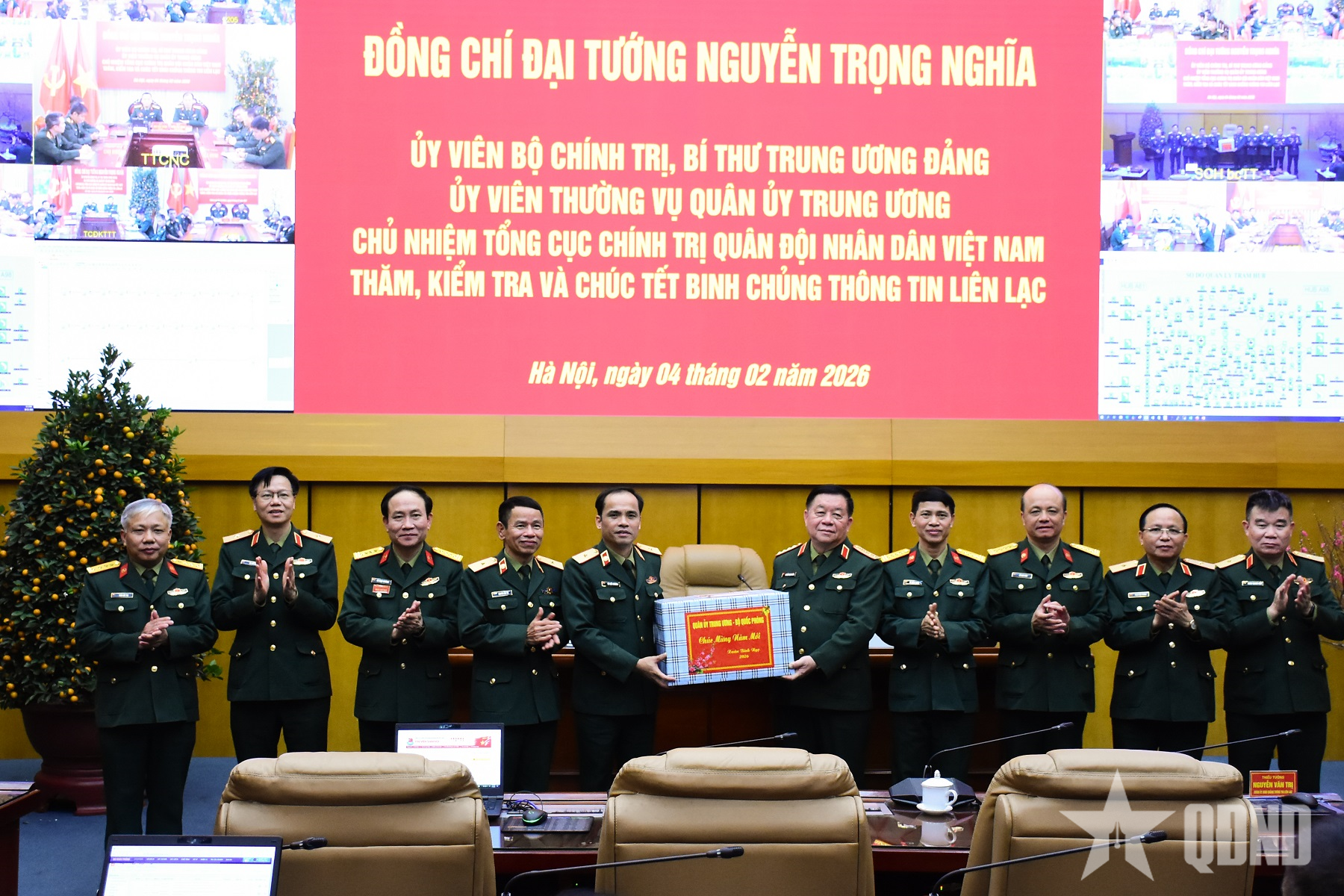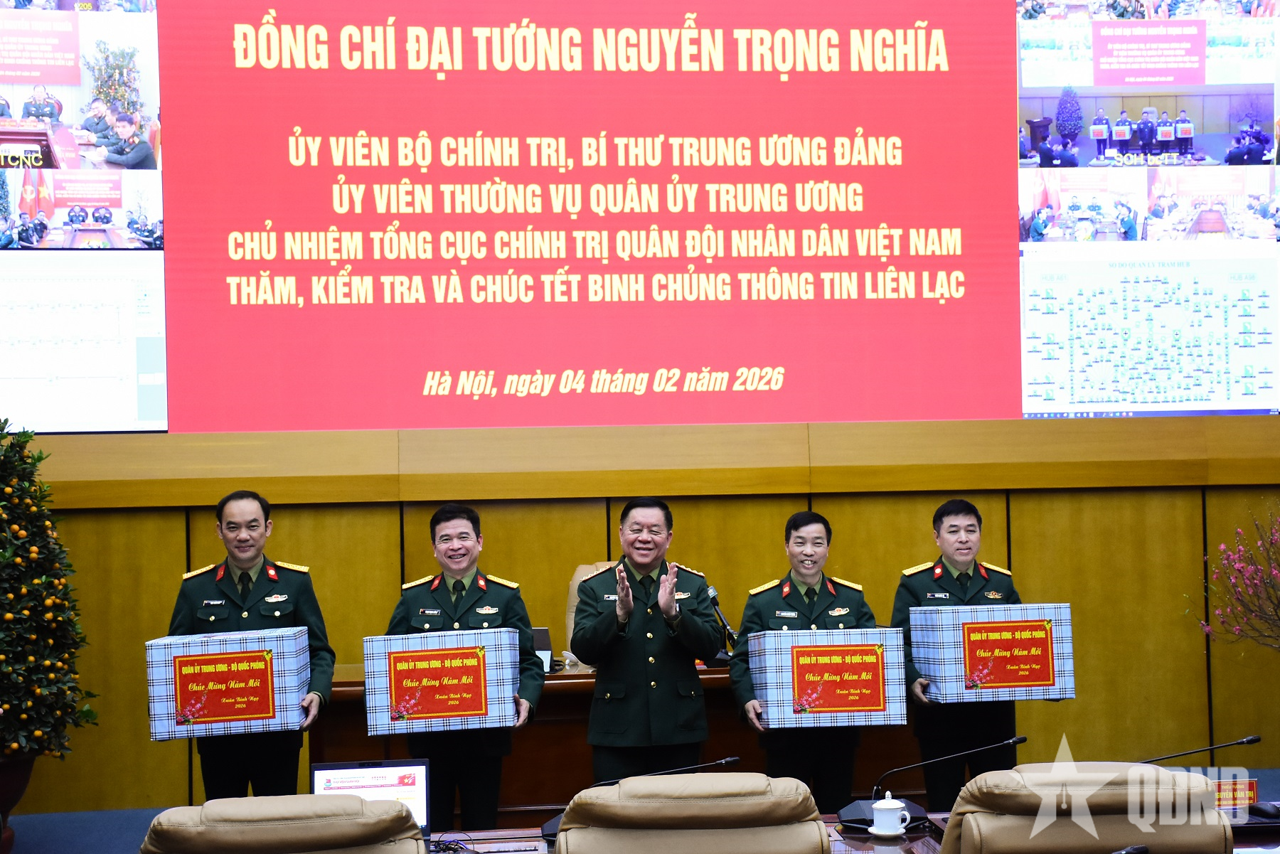Nhân dịp Tết Nguyên đán Bính Ngọ 2026, Đại tướng Nguyễn Trọng Nghĩa chúc cán bộ, chiến sĩ Binh chủng Thông tin liên lạc mạnh khỏe, đoàn kết, bản lĩnh, hoàn thành xuất sắc nhiệm vụ, bảo đảm thông tin liên lạc thông suốt, vững chắc trong mọi tình huống.