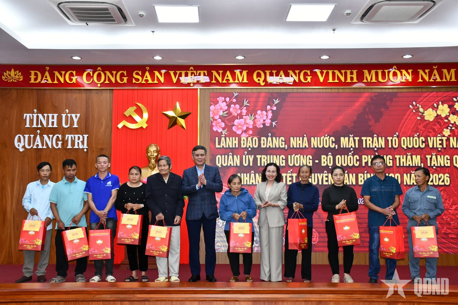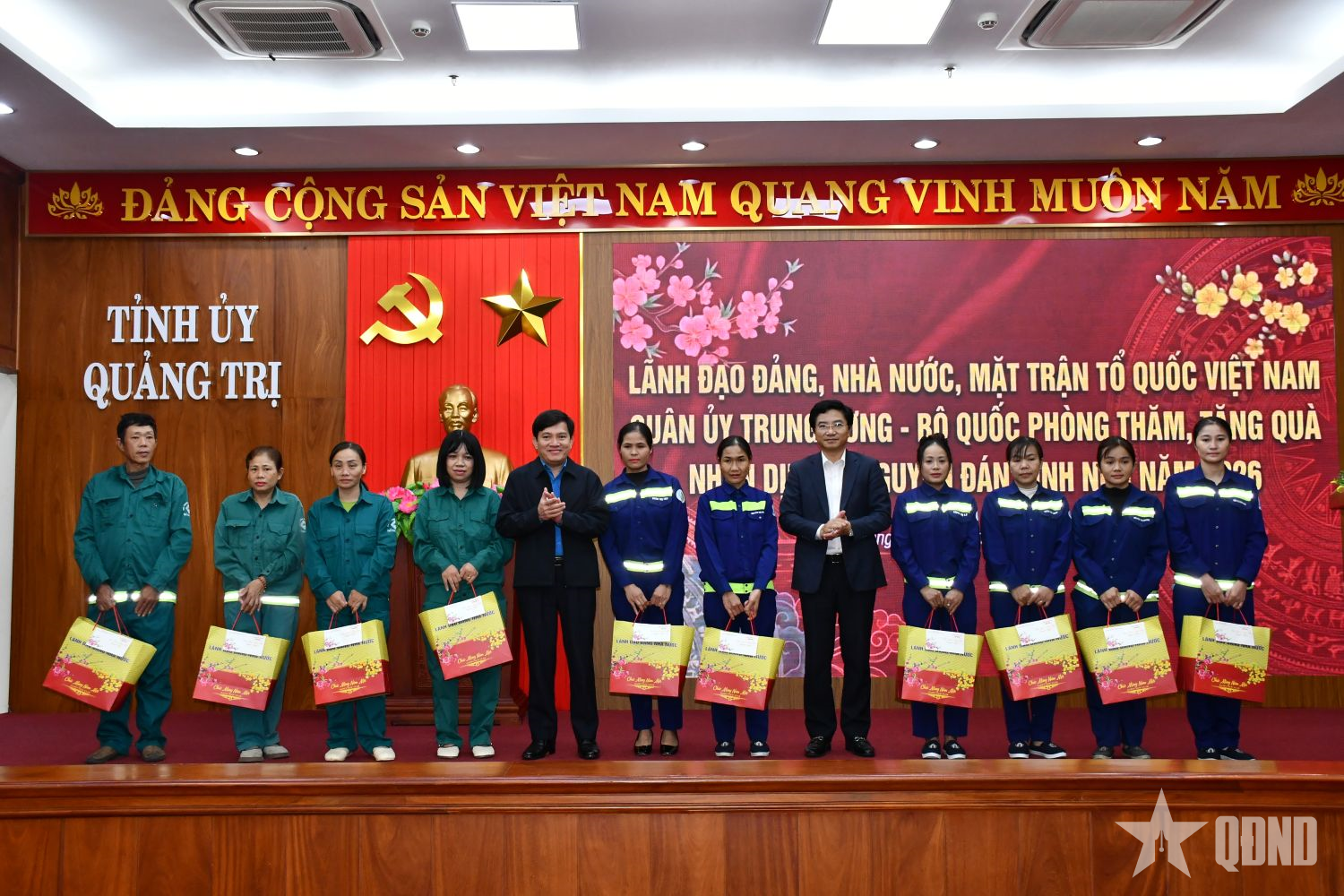 Dịp này, Đại tướng Nguyễn Trọng Nghĩa và các đại biểu đã trao quà Tết của Quân ủy Trung ương, Bộ Quốc phòng; Ủy ban Trung ương MTTQ Việt Nam, Tổng Liên đoàn Lao động Việt Nam tặng 100 gia đình chính sách, người có công tiêu biểu; 400 hộ nghèo và 300 công nhân có hoàn cảnh khó khăn trên địa bàn tỉnh Quảng Trị.