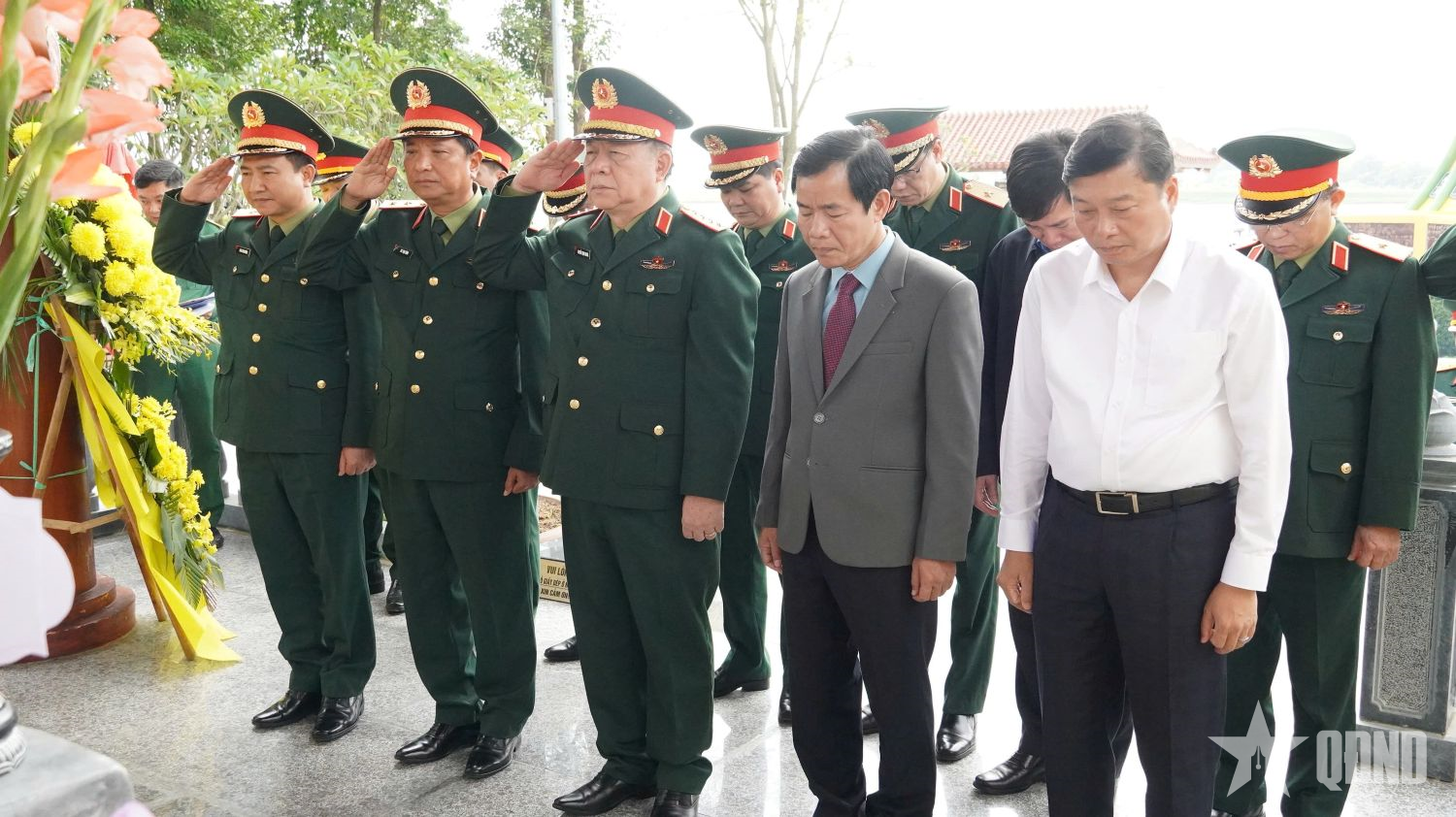 Đại tướng Nguyễn Trọng Nghĩa và các đại biểu tri ân các Anh hùng liệt sĩ tại Khu tưởng niệm nơi hy sinh của 16 thanh niên xung phong (tháng 9-1972) tại Bến phà Long Đại.