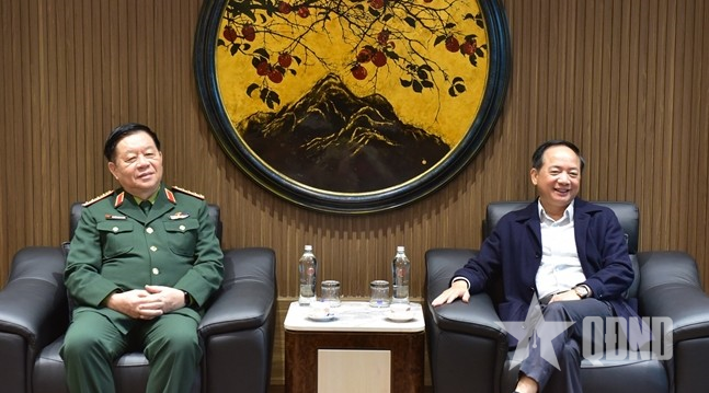Đại tướng Nguyễn Trọng Nghĩa và đồng chí Trịnh Văn Quyết, Bí thư Trung ương Đảng, Trưởng ban Tuyên giáo và Dân vận Trung ương
