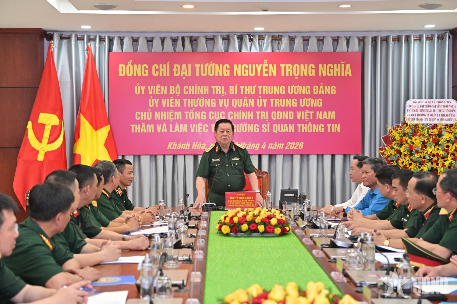 Phát biểu chỉ đạo tại buổi làm việc, Đại tướng Nguyễn Trọng Nghĩa ghi nhận và biểu dương những thành tích xuất sắc mà Trường Sĩ quan Thông tin đạt được thời gian qua. Nhất là việc cụ thể hóa các nghị quyết của Đảng vào nhiệm vụ chuyên môn, tiên phong ứng dụng công nghệ mới và trí tuệ nhân tạo (AI) vào giảng dạy.