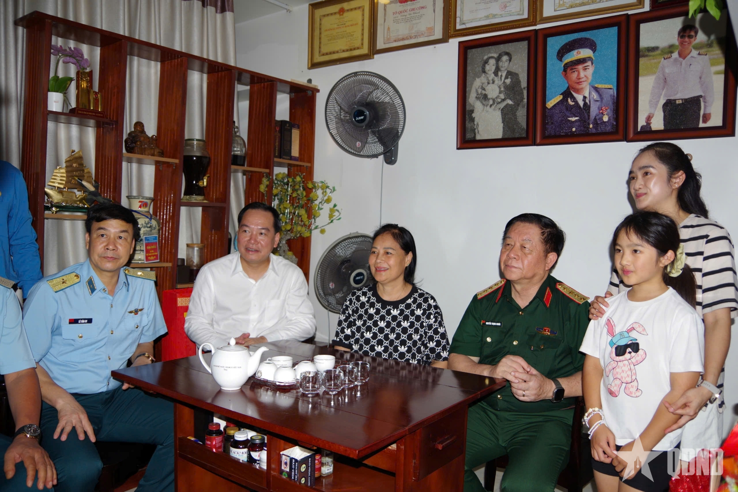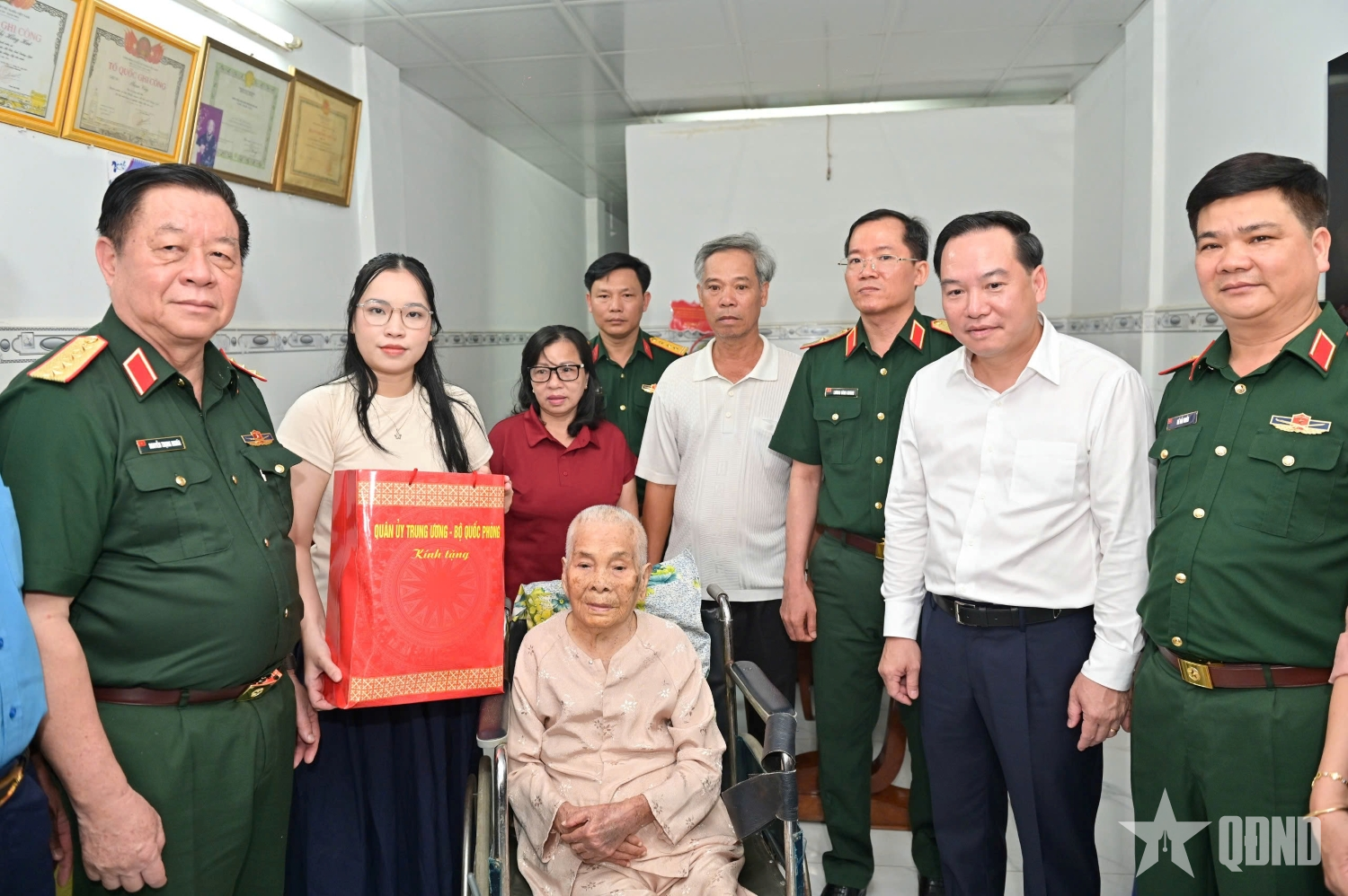 Đại tướng Nguyễn Trọng Nghĩa thăm hỏi Bà mẹ Việt Nam anh hùng Lê Thị Minh Thủy (ở giữa).