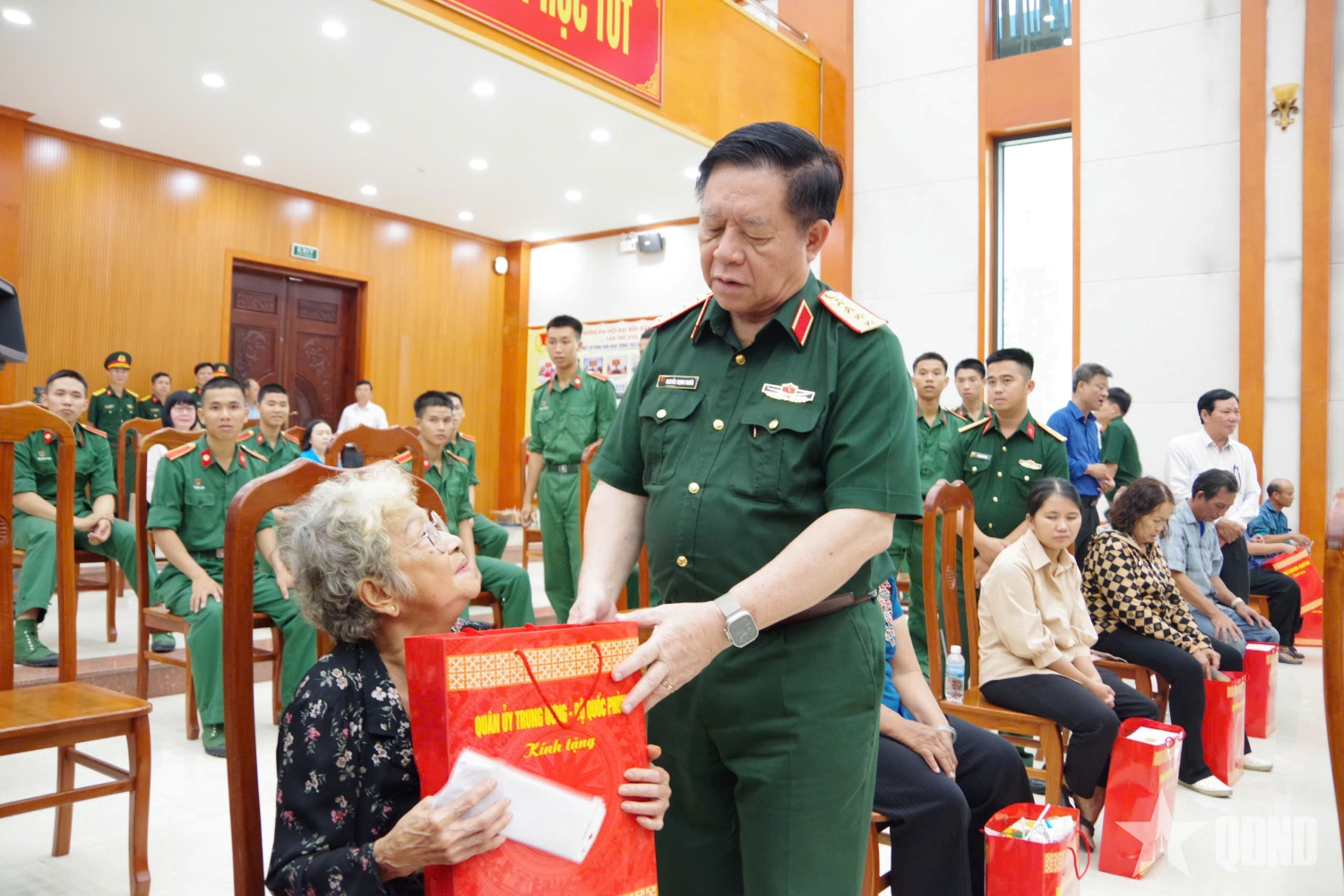 Đại tướng Nguyễn Trọng Nghĩa trao quà của Quân ủy Trung ương, Bộ Quốc phòng tặng gia đình chính sách.
