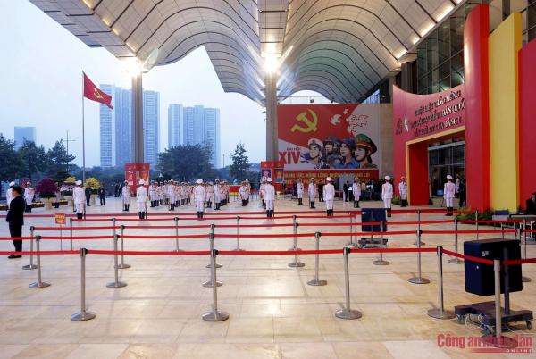 Lực lượng Cảnh vệ làm nhiệm vụ tại Trung tâm Hội nghị Quốc gia, nơi diễn ra Đại hội đại biểu toàn quốc lần thứ XIV của Đảng.
