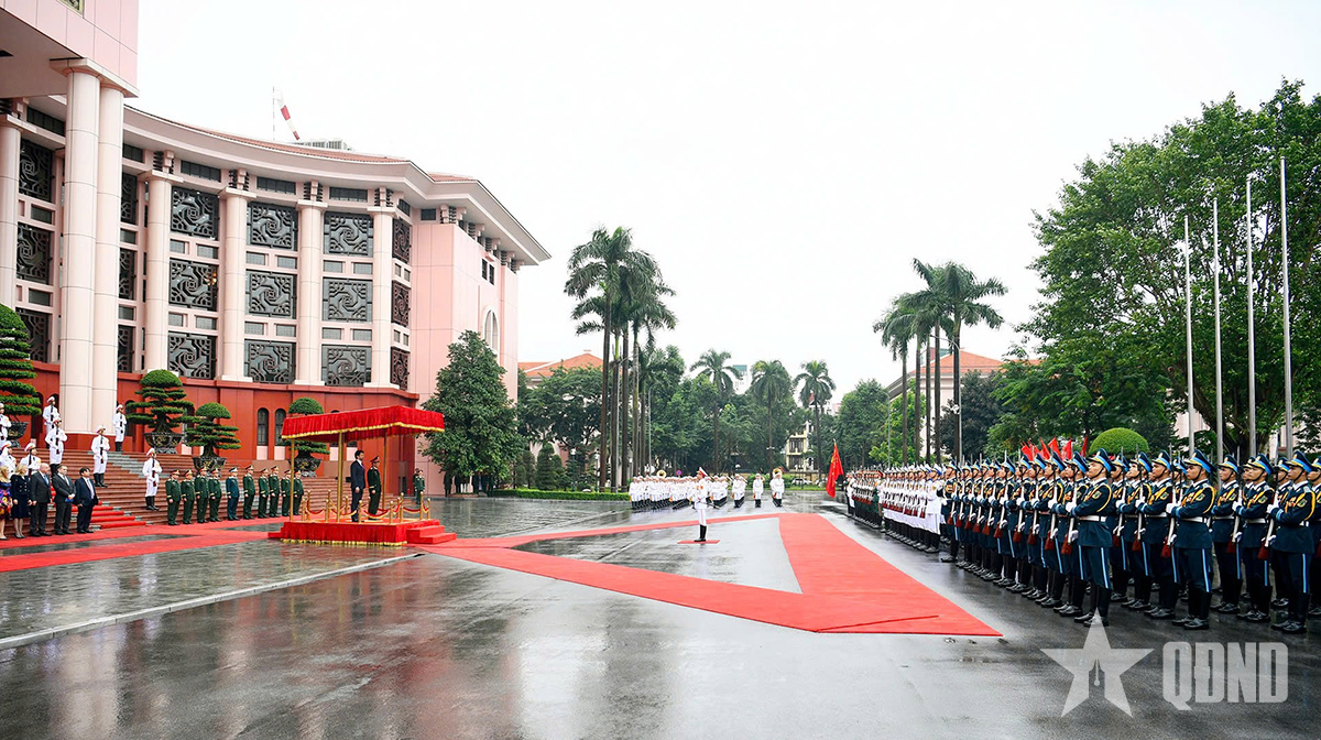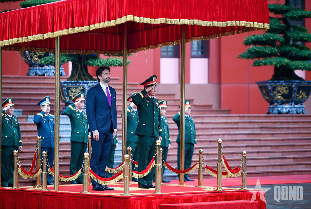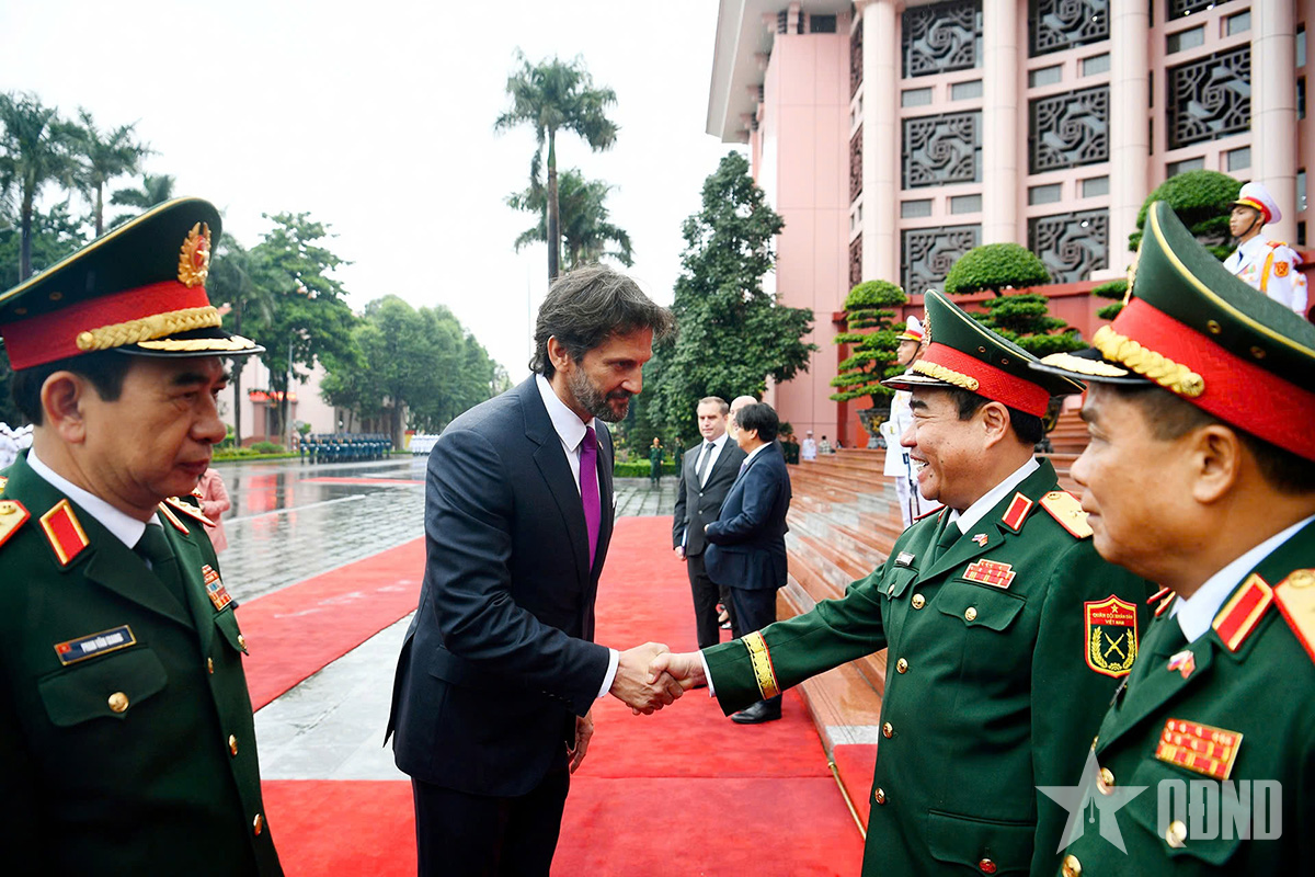 Đại tướng Phan Văn Giang chủ trì lễ đón Phó thủ tướng, Bộ trưởng Bộ Quốc phòng Slovakia Robert Kalinak. Ảnh: TUẤN HUY
