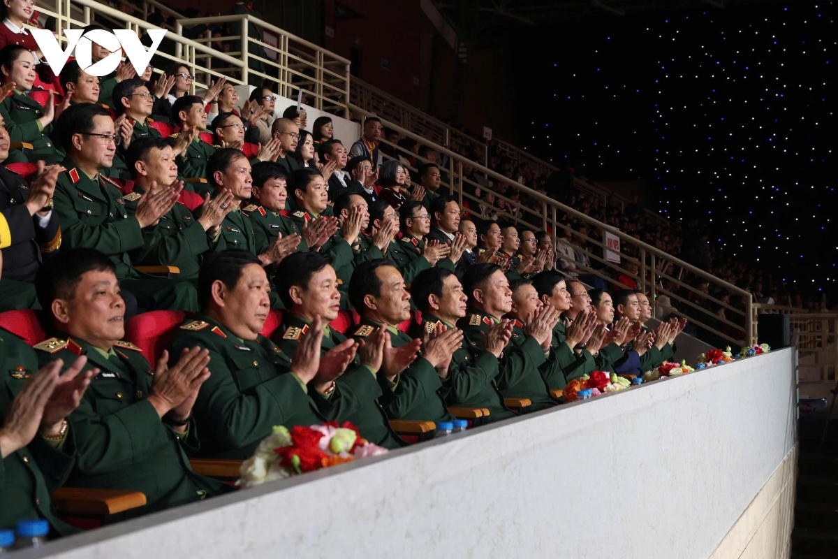 Xen giữa những cuộc gặp gỡ xúc động đầu xuân của những người lính là những màn trình diễn nghệ thuật hùng tráng tại Cung điền kinh, Hà Nội.