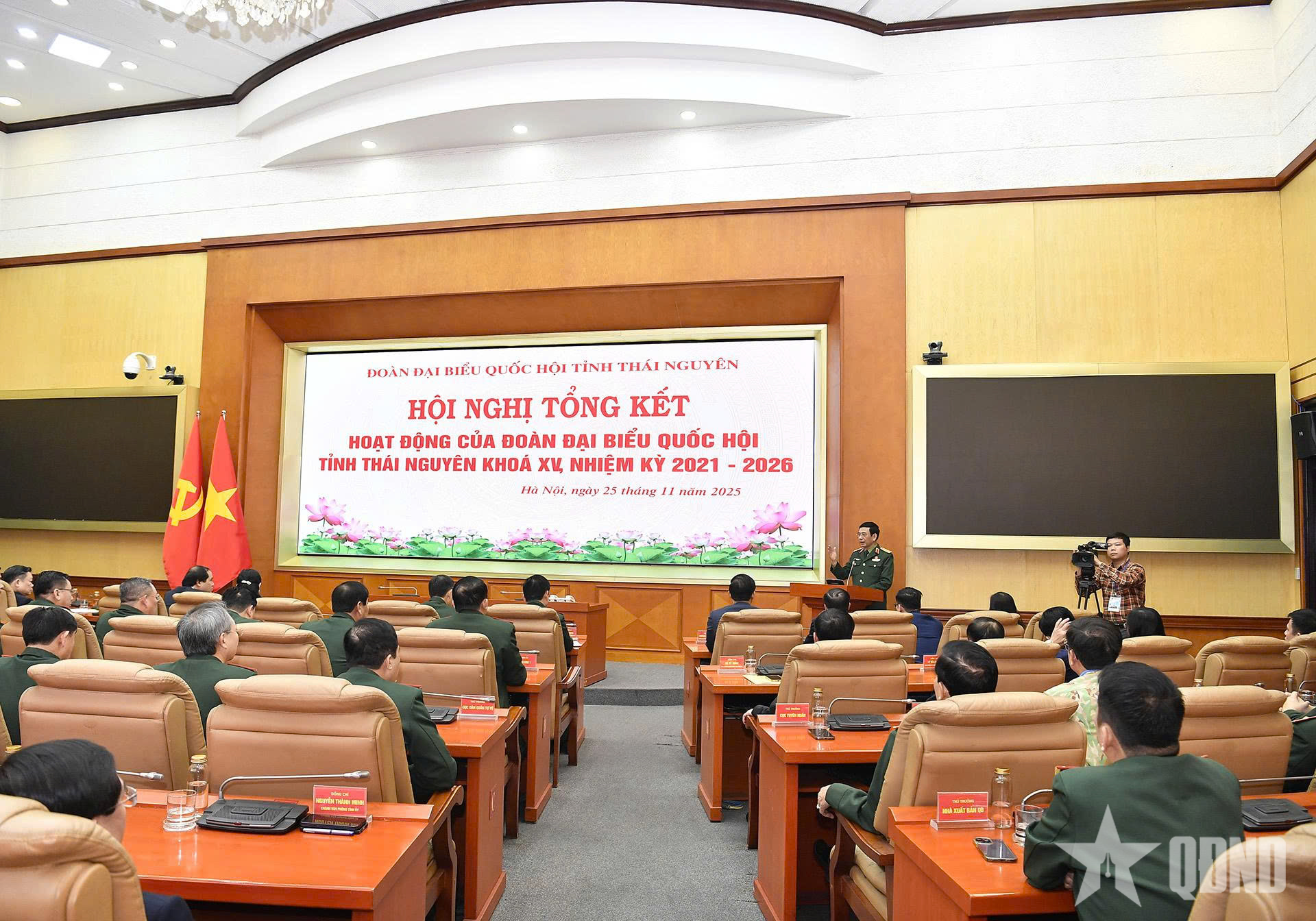 Đại tướng Phan Văn Giang nêu rõ, trong thành tựu chung của Quốc hội khóa XV, có phần đóng góp quan trọng của Đoàn đại biểu Quốc hội tỉnh Thái Nguyên. Không chỉ tham gia hoạt động lập pháp, giám sát tối cao, quyết định những vấn đề quan trọng của đất nước tại Quốc hội, Đoàn đại biểu Quốc hội tỉnh Thái Nguyên còn có nhiều hoạt động thể hiện tinh thần đại biểu của nhân dân, như không quản ngại hiểm nguy, đi vào vùng dịch Covid-19 để thực hiện nhiệm vụ đại biểu; giúp thân nhân liệt sĩ tìm lại được những thông tin quan trọng để giải quyết thấu tình, đạt lý; thúc đẩy các dự án hoàn thiện hệ thống cơ sở hạ tầng trên địa bàn tỉnh, tạo thuận lợi cho phát triển kinh tế - xã hội của tỉnh, nhất là ở vùng đồng bào dân tộc thiểu số và miền núi.