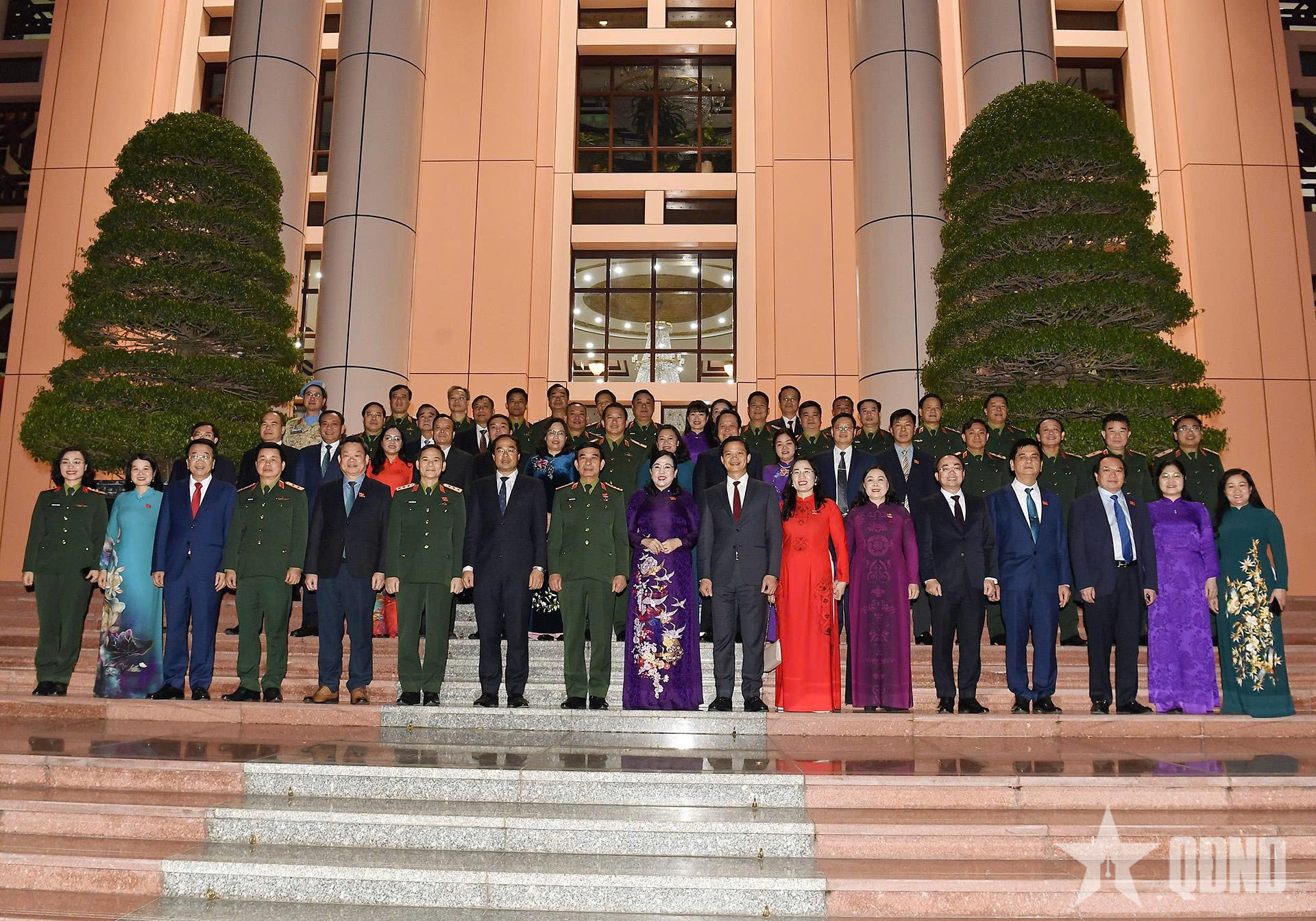 Đại tướng Phan Văn Giang và các đại biểu dự hội nghị chụp ảnh lưu niệm.