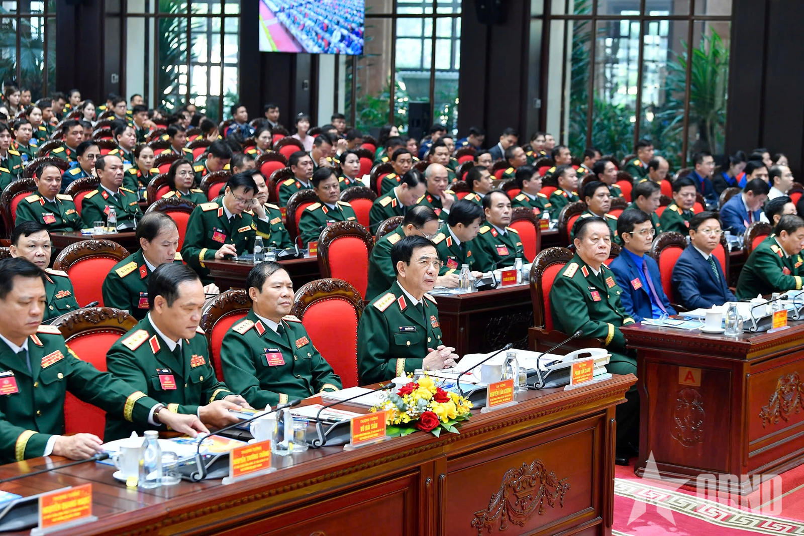 Đại tướng Nguyễn Trọng Nghĩa, Ủy viên Bộ Chính trị, Bí thư Trung ương Đảng, Ủy viên Thường vụ Quân ủy Trung ương, Chủ nhiệm Tổng cục Chính trị dự, phát biểu khai mạc đại hội.