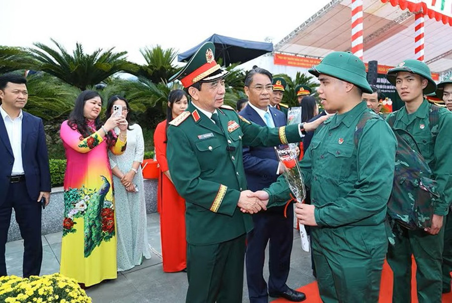 Tại buổi lễ, Đại tướng Phan Văn Giang cùng các đại biểu tặng hoa, động viên các tân binh trước giờ lên đường. Đại tướng ân cần bắt tay từng thanh niên, hỏi thăm hoàn cảnh gia đình, căn dặn các tân binh phát huy truyền thống quê hương cách mạng, nỗ lực học tập, huấn luyện, chấp hành nghiêm điều lệnh, kỷ luật Quân đội.