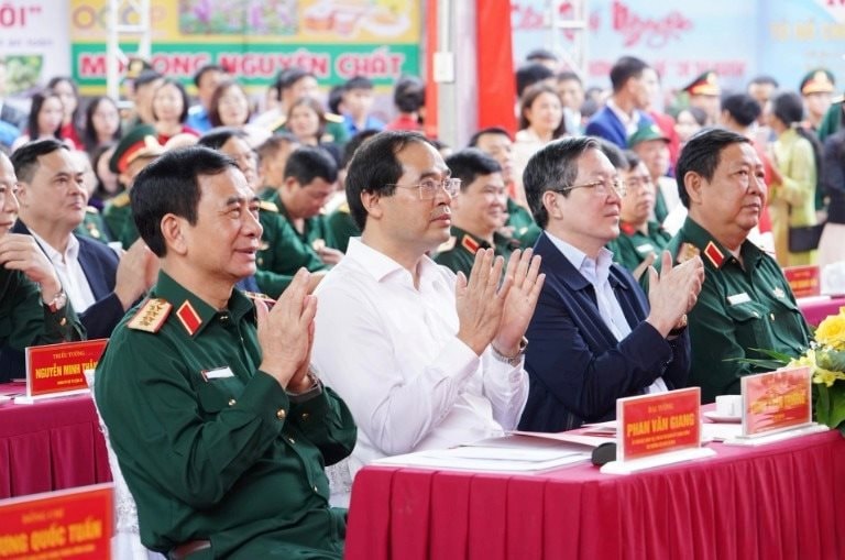 Đại tướng Phan Văn Giang và các đồng chí lãnh đạo, đại biểu dự Ngày hội Đại đoàn kết toàn dân tộc tại phường Linh Sơn.