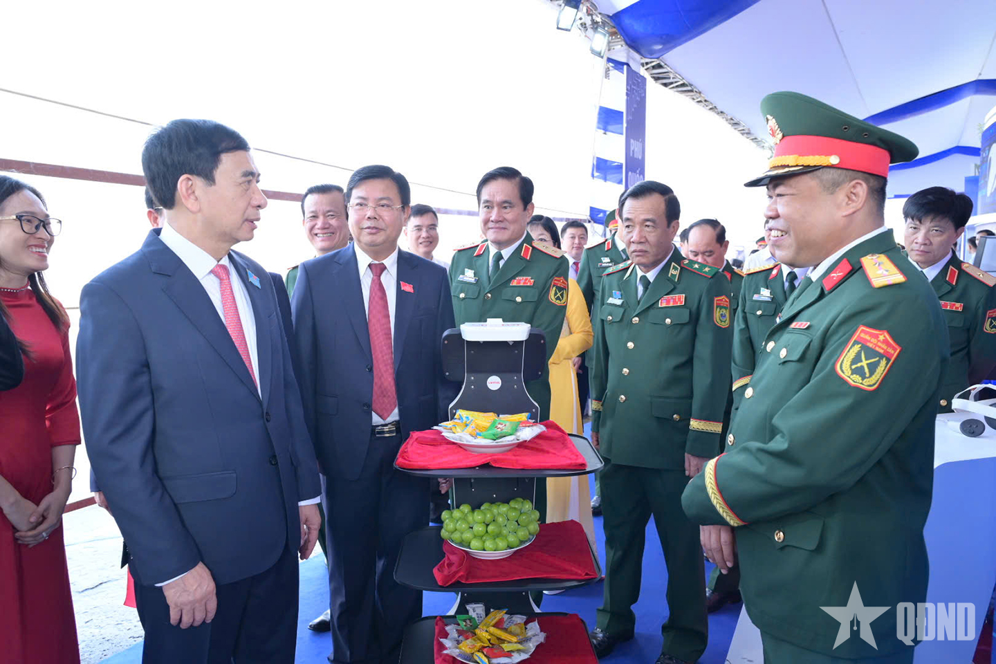 Đại tướng Phan Văn Giang, Ủy viên Bộ Chính trị, Phó bí thư Quân ủy Trung ương, Bộ trưởng Bộ Quốc phòng tham quan triển lãm tại Đại hội đại biểu Đảng bộ tỉnh An Giang lần thứ I, nhiệm kỳ 2025-2030.