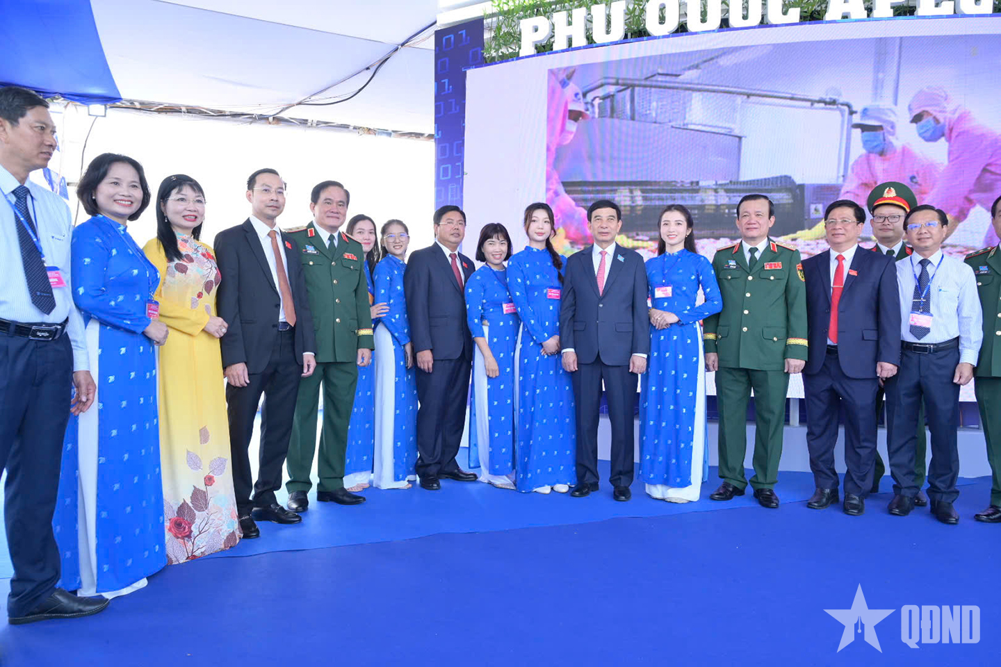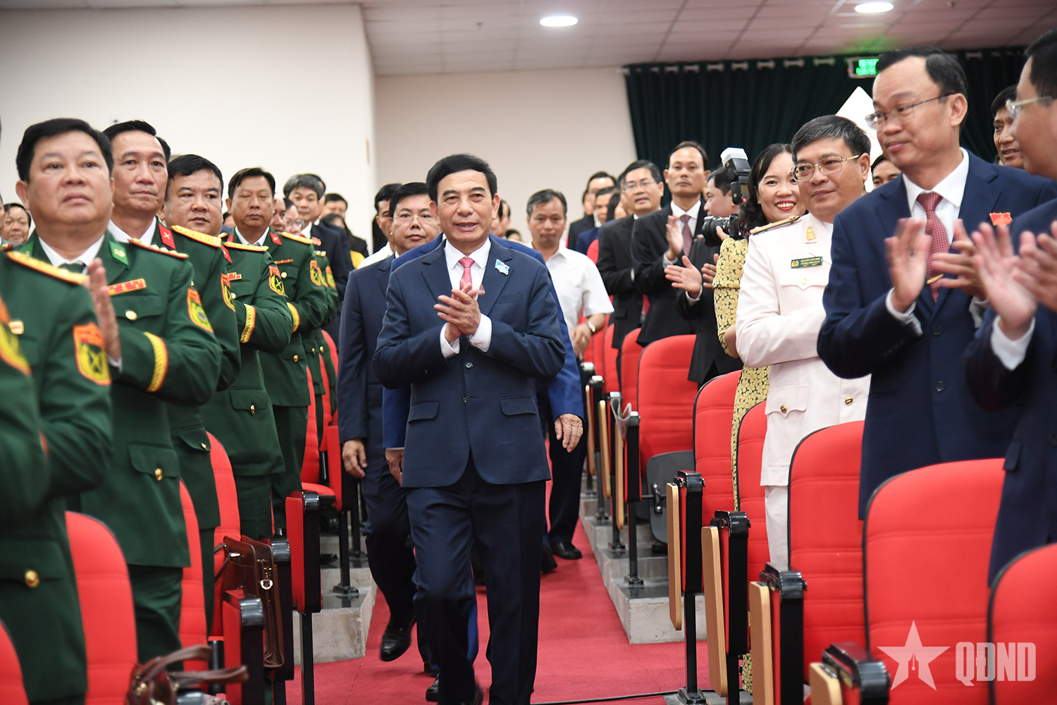Đại tướng Phan Văn Giang, Ủy viên Bộ Chính trị, Phó bí thư Quân ủy Trung ương, Bộ trưởng Bộ Quốc phòng chụp ảnh cùng các đại biểu tại Đại hội đại biểu Đảng bộ tỉnh An Giang lần thứ I, nhiệm kỳ 2025-2030.