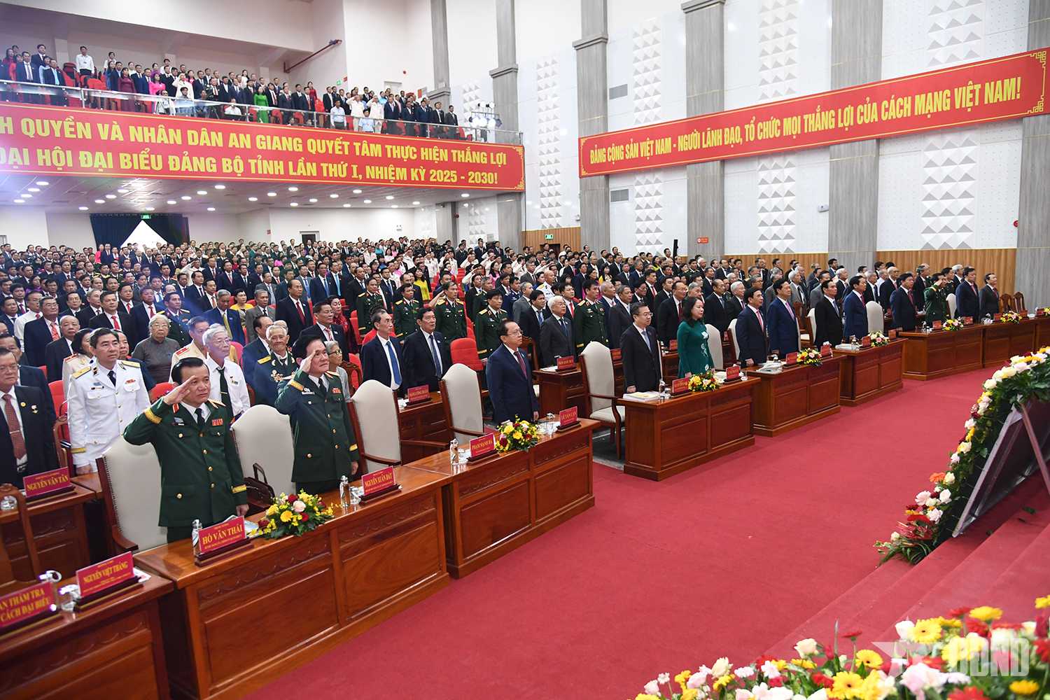 Đại tướng Phan Văn Giang, Ủy viên Bộ Chính trị, Phó bí thư Quân ủy Trung ương, Bộ trưởng Bộ Quốc phòng và các đại biểu tại Đại hội đại biểu Đảng bộ tỉnh An Giang lần thứ I, nhiệm kỳ 2025-2030.
