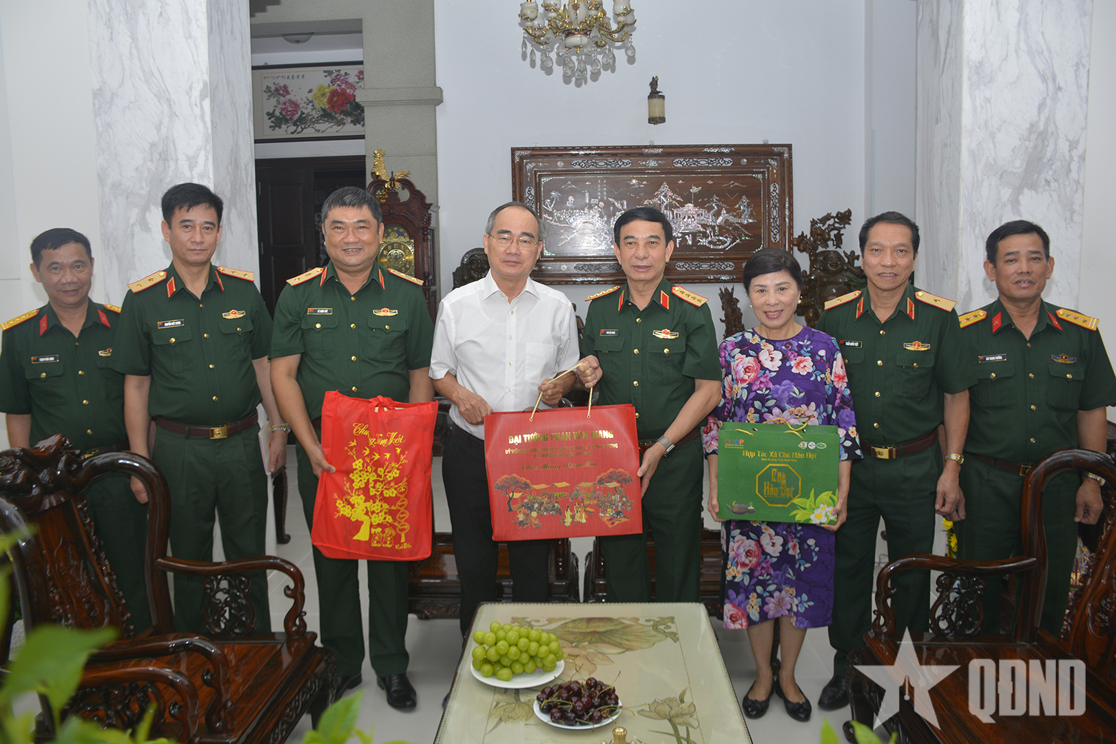 Đại tướng Phan Văn Giang lì xì cán bộ, chiến sĩ Tiểu đoàn Vệ binh - Kiểm soát quân sự 31, Bộ tư lệnh TP Hồ Chí Minh (Quân khu 7).