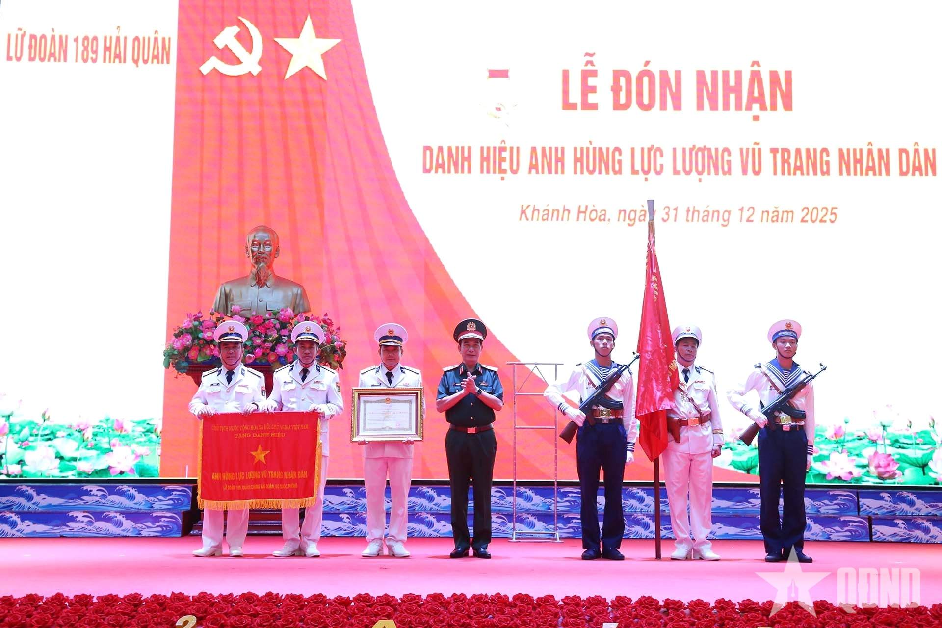 Thừa ủy quyền của Chủ tịch nước, Đại tướng Phan Văn Giang trao danh hiệu Anh hùng Lực lượng vũ trang nhân dân tặng Lữ đoàn 189 Hải quân.
