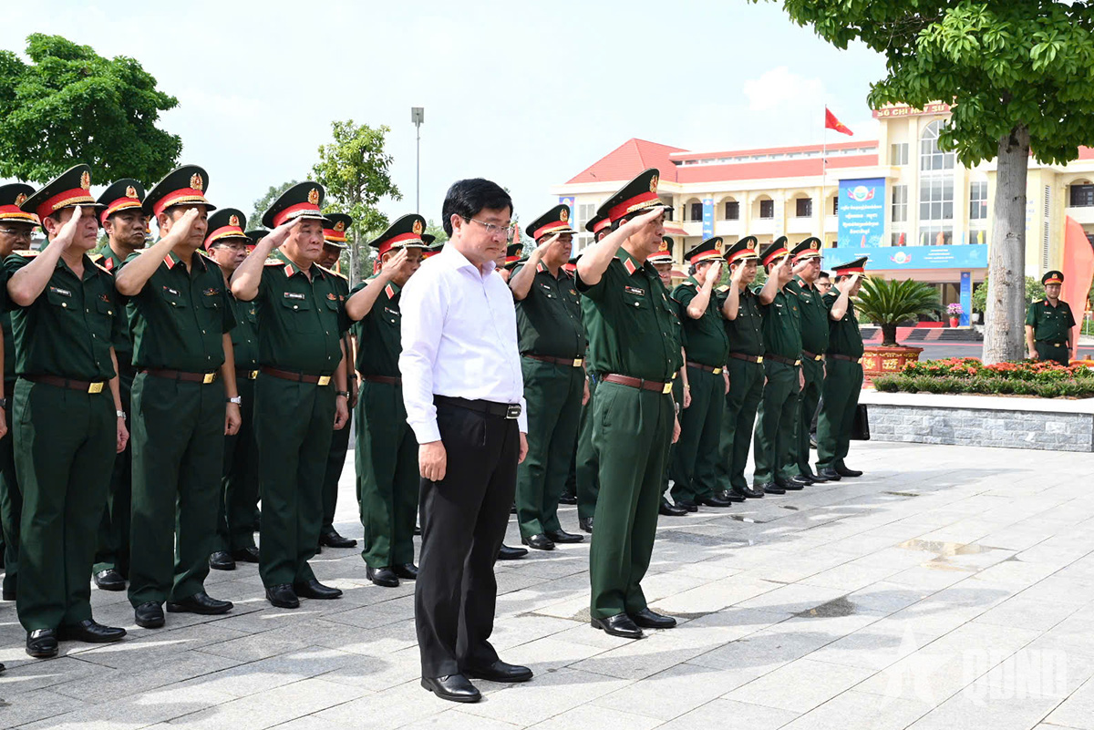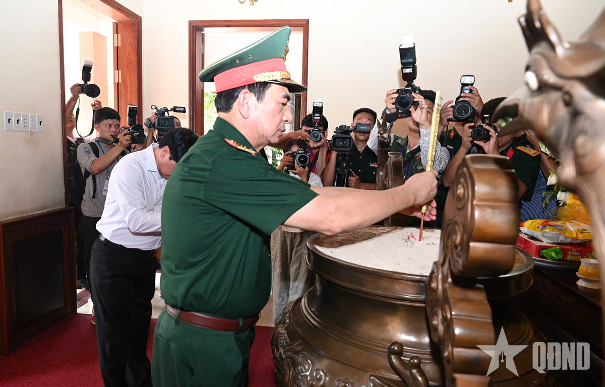 Đại tướng Phan Văn Giang và các đại biểu dâng hương, dâng hoa tưởng niệm Chủ tịch Hồ Chí Minh và các anh hùng, liệt sĩ Sư đoàn.
