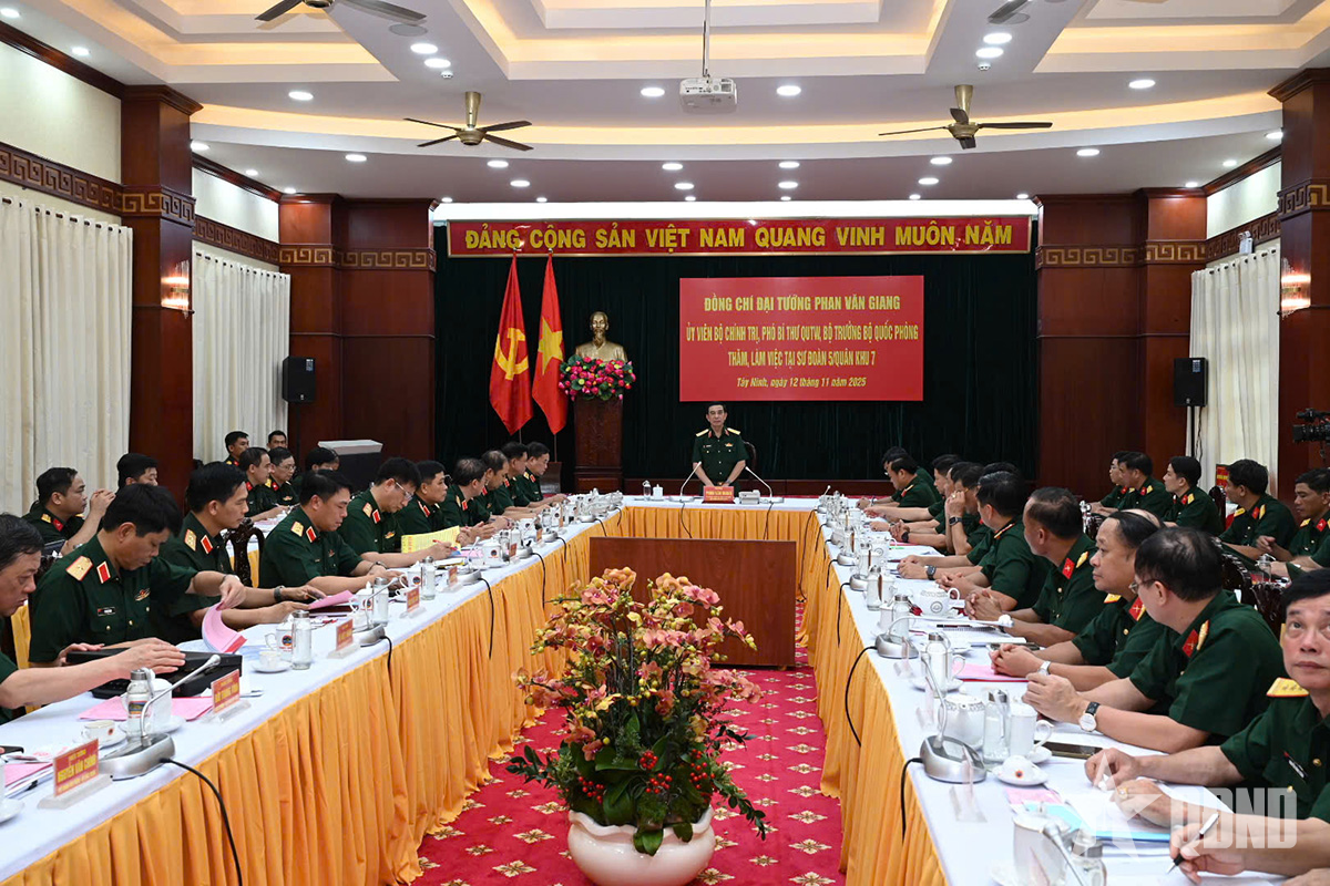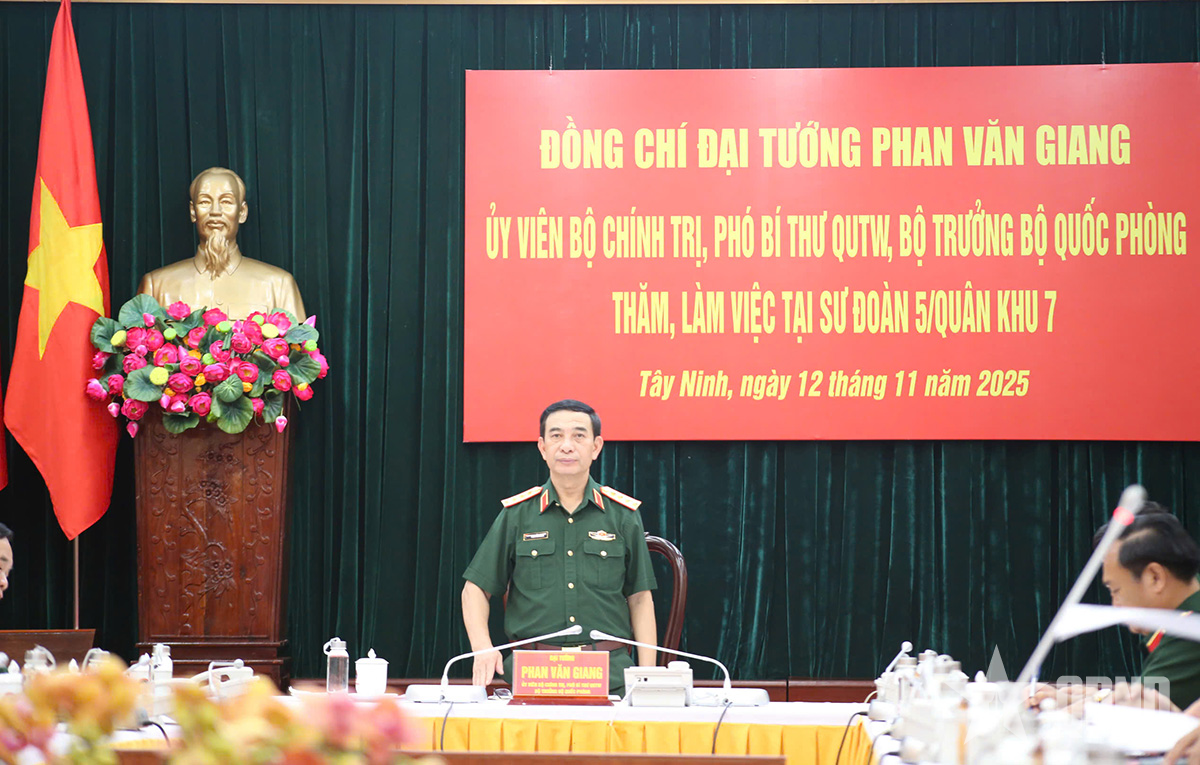 Đại tướng Phan Văn Giang đã nghe Đại tá Nguyễn Hải Nam, Sư đoàn trưởng Sư đoàn 5 báo cáo kết quả thực hiện nhiệm vụ quân sự 10 tháng đầu năm 2025 và phương hướng, nhiệm vụ trong thời gian tới của Sư đoàn. Theo đó, Đảng ủy, chỉ huy Sư đoàn đã quán triệt, chấp hành nghiêm nghị quyết, mệnh lệnh, chỉ thị của Quân khu, Quân ủy Trung ương, Bộ Quốc phòng, tập trung lãnh đạo, chỉ đạo triển khai toàn diện các mặt công tác. Trong đó, nổi bật là việc duy trì, thực hiện nghiêm nền nếp, chế độ trực sẵn sàng chiến đấu (SSCĐ), tổ chức lực lượng trực đúng thành phần theo quy định. Hệ thống văn kiện SSCĐ được xây dựng mới, điều chỉnh, bổ sung đầy đủ các phương án tác chiến, bảo đảm đồng bộ, sát, đúng với nhiệm vụ và tình hình khi tổ chức chính quyền địa phương 2 cấp. Tổ chức tuần tra, canh gác bảo đảm an toàn tuyệt đối cơ quan, đơn vị. Chủ động lực lượng, phương tiện giúp dân ứng phó, khắc phục hậu quả thiên tai, tìm kiếm cứu nạn. Phối hợp chặt chẽ với lực lượng công an, các đơn vị đứng chân trên địa bàn nắm chắc tình hình an ninh chính trị, trật tự an toàn xã hội, kịp thời xử trí các tình huống, không để bị động, bất ngờ, phối hợp hoàn thành tốt nhiệm vụ bảo vệ an toàn các sự kiện chính trị trọng đại của Đảng, Nhà nước, Quân đội, cấp ủy, chính quyền các địa phương trên địa bàn.