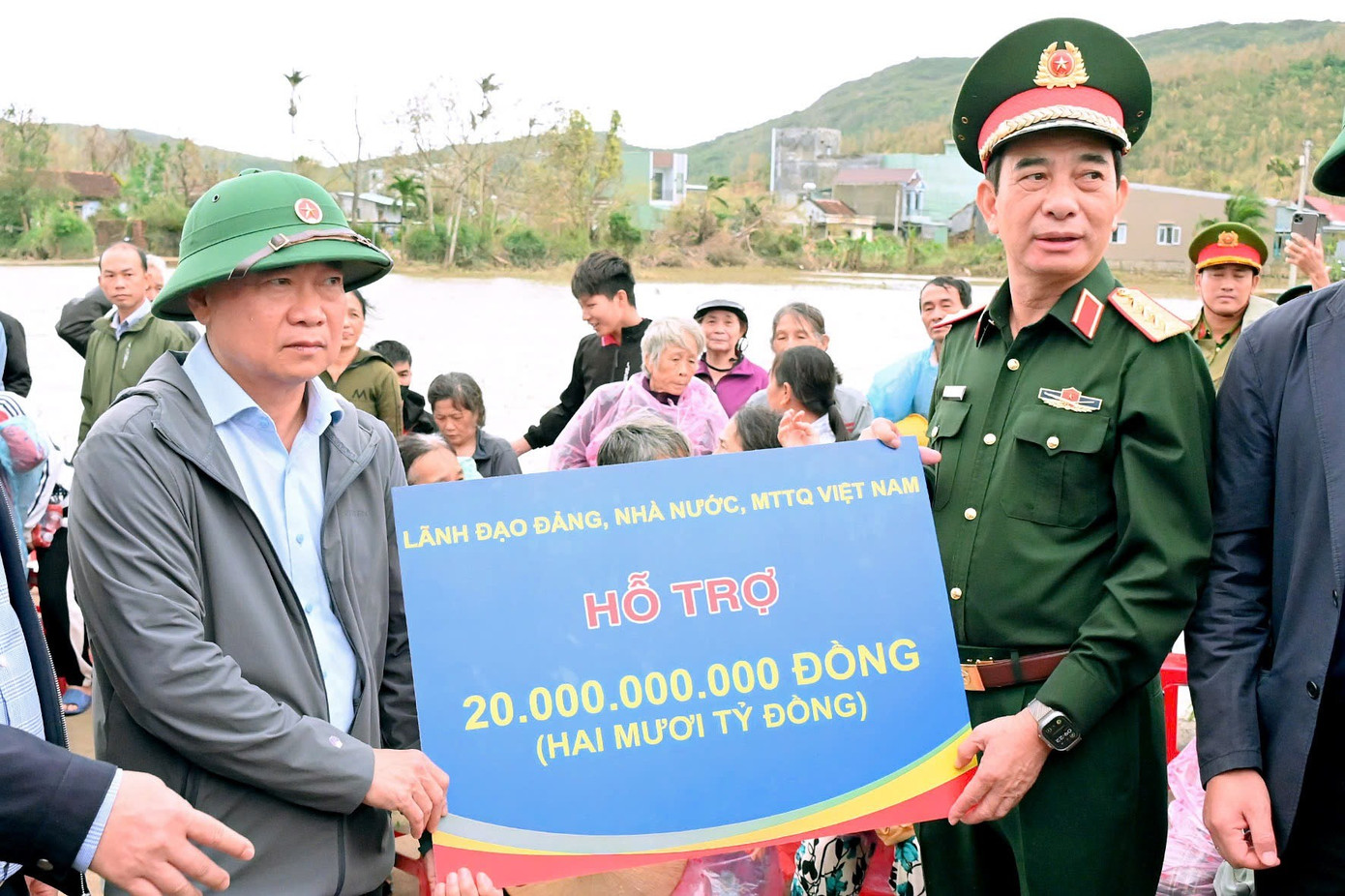 Thay mặt lãnh đạo Đảng, Nhà nước, Quân ủy Trung ương, Bộ Quốc phòng, Đại tướng Phan Văn Giang ân cần động viên, chia sẻ với bà con vùng lũ. Đại tướng mong bà con sớm vượt qua khó khăn và vững tin vào sự lãnh đạo của Đảng và Nhà nước, chính quyền địa phương.