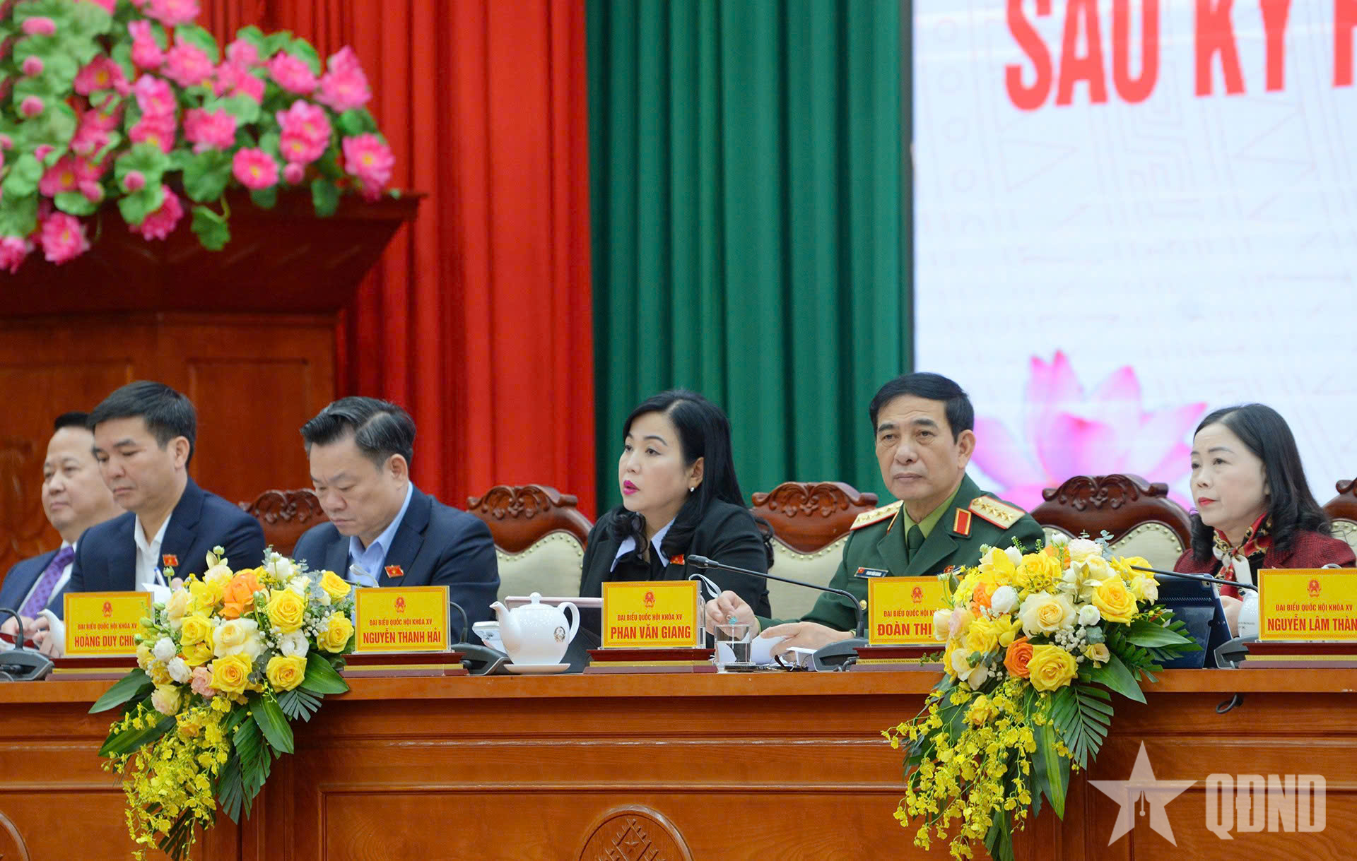 Đại tướng Phan Văn Giang và các đồng chí thuộc Đoàn đại biểu Quốc hội tỉnh Thái Nguyên.