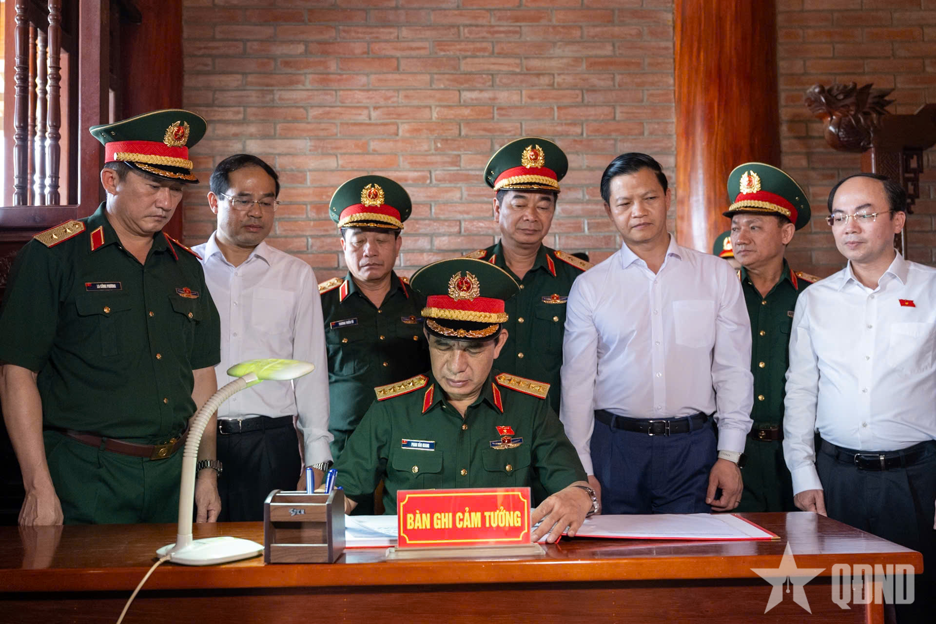 Đại tướng Phan Văn Giang ghi cảm tưởng tại Khu di tích lịch sử Quốc gia Đại đội Thanh niên xung phong 915, Đội 91 Bắc Thái.