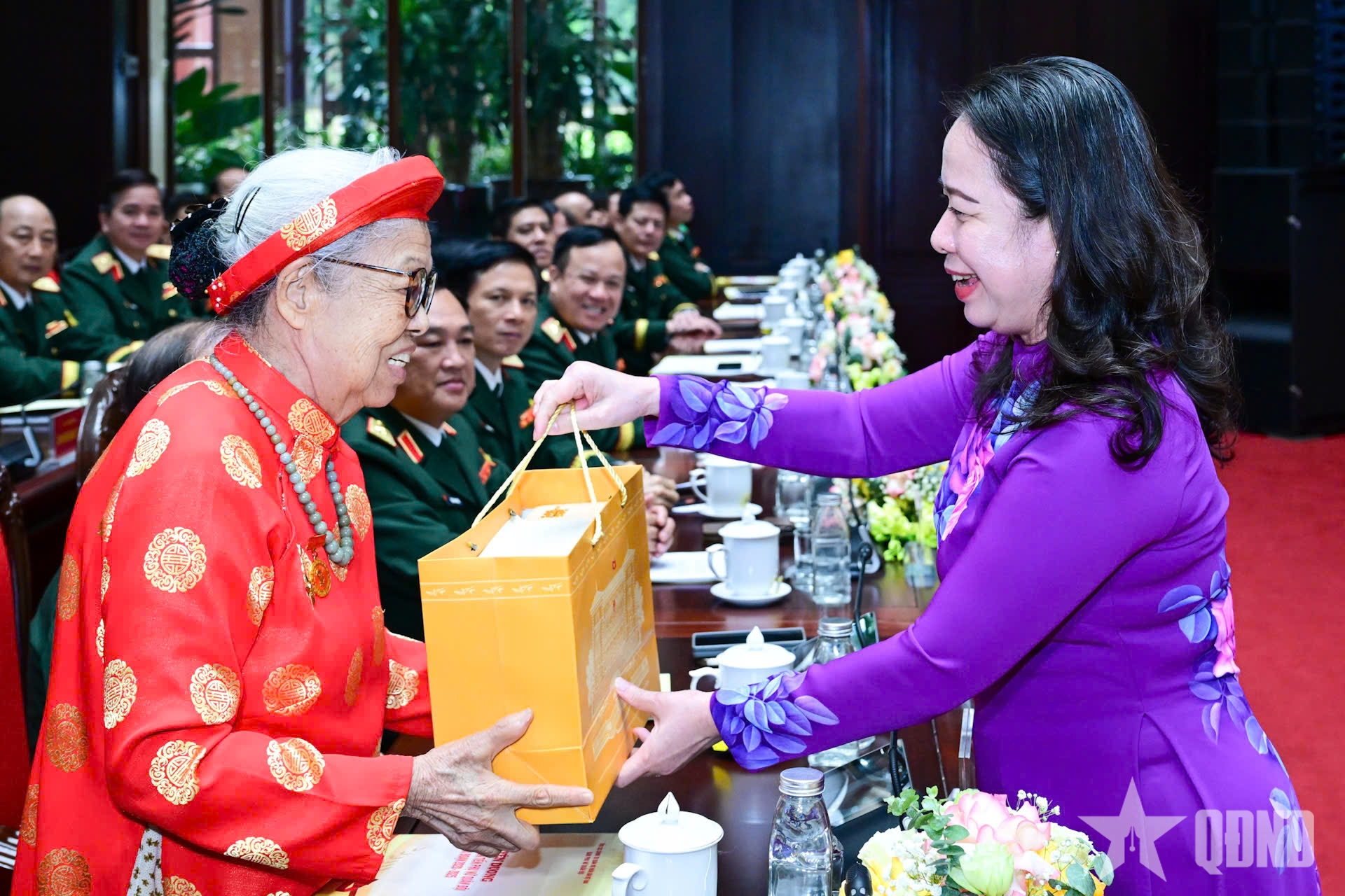 Phó chủ tịch nước Võ Thị Ánh Xuân trao quà tặng cán bộ, hội viên Phụ nữ Quân đội điển hình tiên tiến.