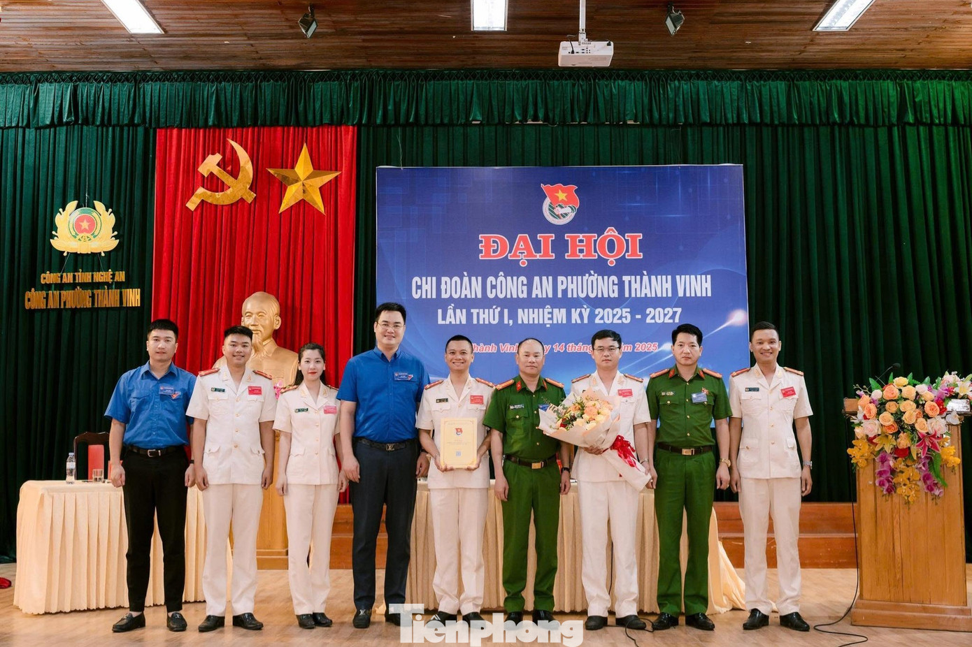 Đại úy Lê Quốc Huy (giữa) là Bí thư Chi đoàn Công an phường Thành Vinh nhiệm kỳ 2025 - 2027.