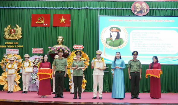 Đại tá Nguyễn Thị Hải Yến, Phó Giám đốc Công an tỉnh Vĩnh Long trao Giải thưởng “Gương mặt trẻ Công an Vĩnh Long tiêu biểu” và “Phụ nữ Công an Vĩnh Long tiêu biểu”.
