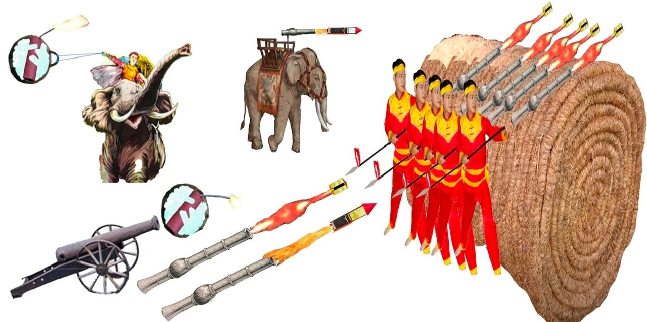 Bắn hỏa tiễn phốt pho trên voi không làm voi giật mình, sau cuộn rơm tiến đánh Ngọc Hồi