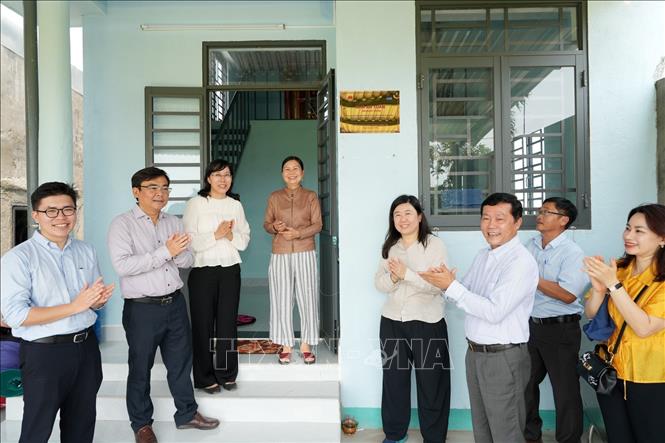 Tham quan nhà của một hộ dân phường Đông Hòa, tỉnh Đắk Lắk được hỗ trợ xây nhà mới. Ảnh: TTXVN phát