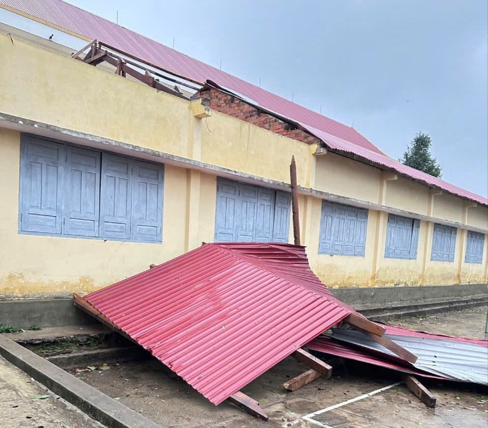 Trường học ở xã M'đrắk bị tốc mái do bão