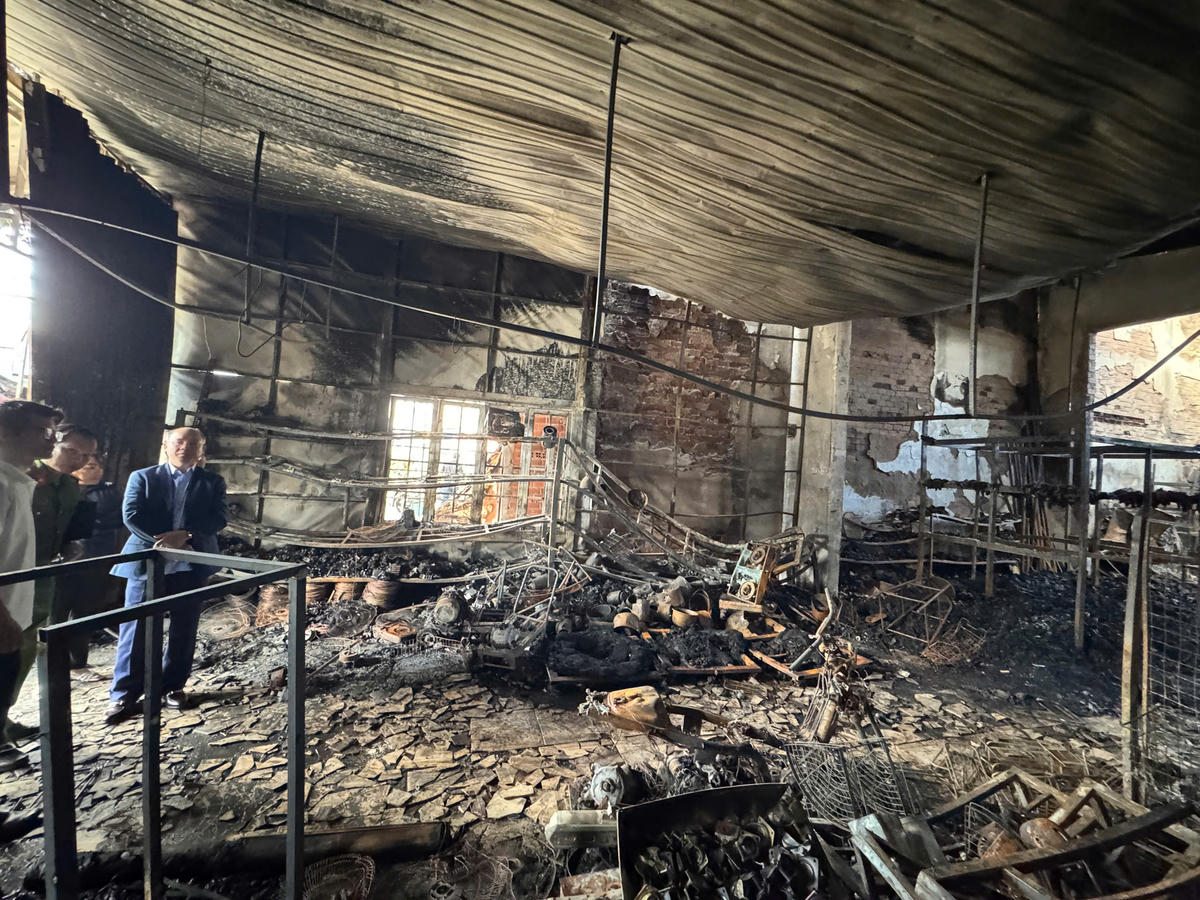 Ghi nhận tại hiện trường, toàn bộ tài sản, vật dụng sinh hoạt và hàng hóa trong căn nhà bị thiêu rụi hoàn toàn. Nhiều khung sắt, cửa kéo và vật dụng kim loại bị nung nóng, biến dạng; mùi khét vẫn bao trùm khu vực dù đám cháy đã được dập tắt.