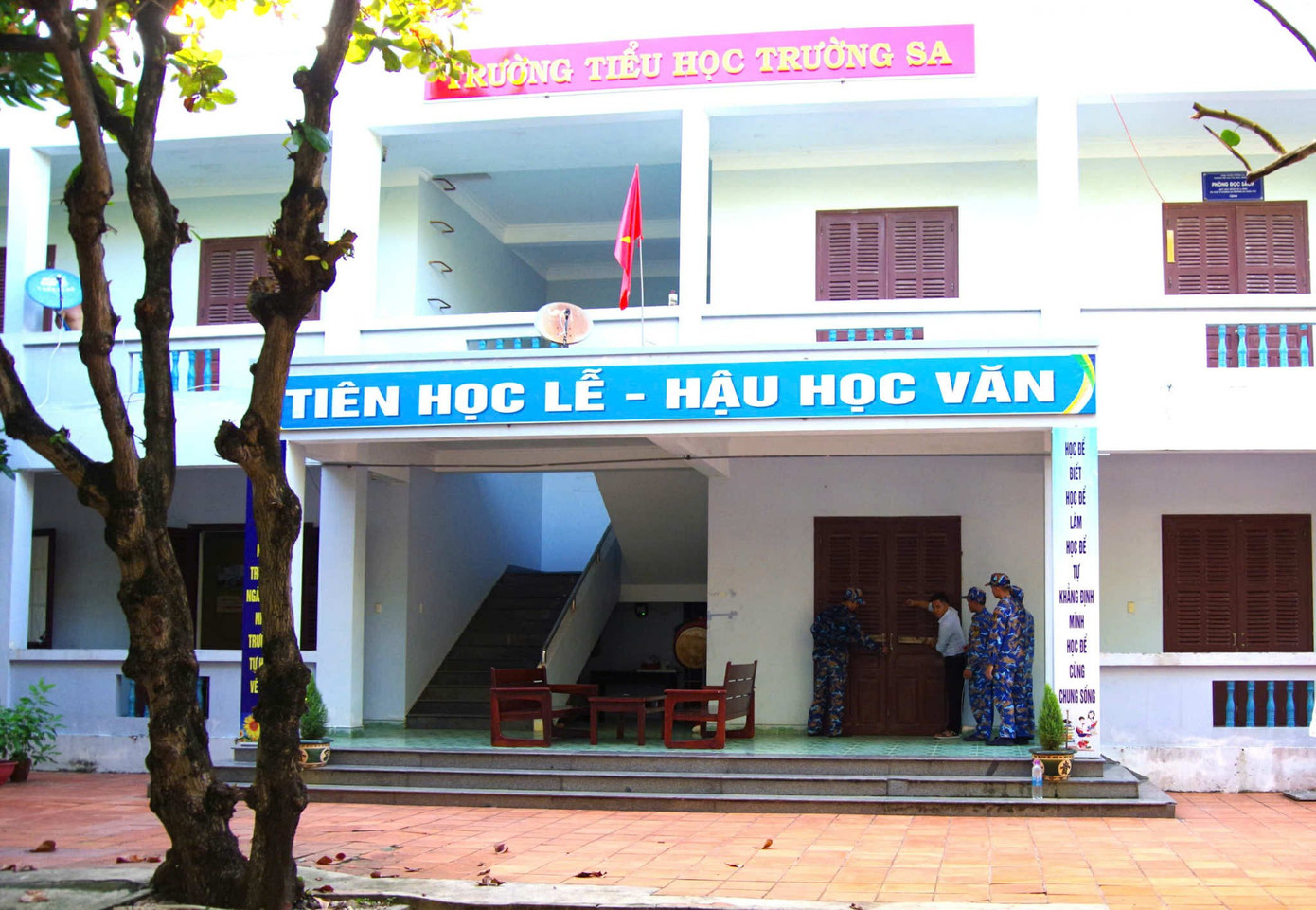 Trường Tiểu học Trường Sa được gia cố phòng chống bão.